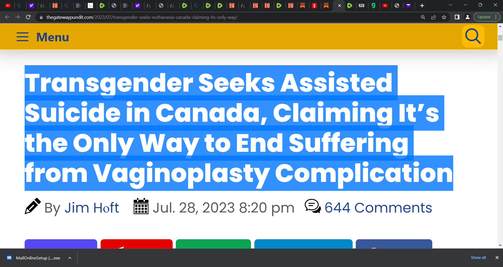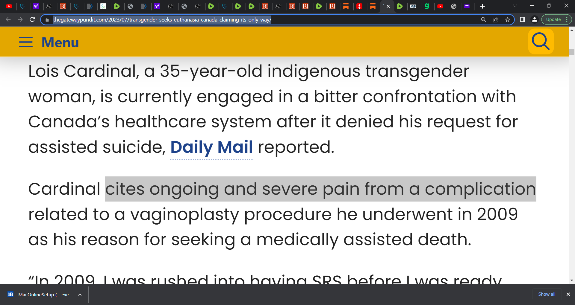 The stats are that more than 50% of transgenders are unhappy with having undergone these procedures. This is very sad. No one for any reason should be in so much pain they want to die. I feel so badly. However on the other end, I’m surprised Canada isn’t assisting with euthanasia. From what I’ve read the country seeks to help suicide for anyone “draining “ their society like the homeless and mentally disabled.