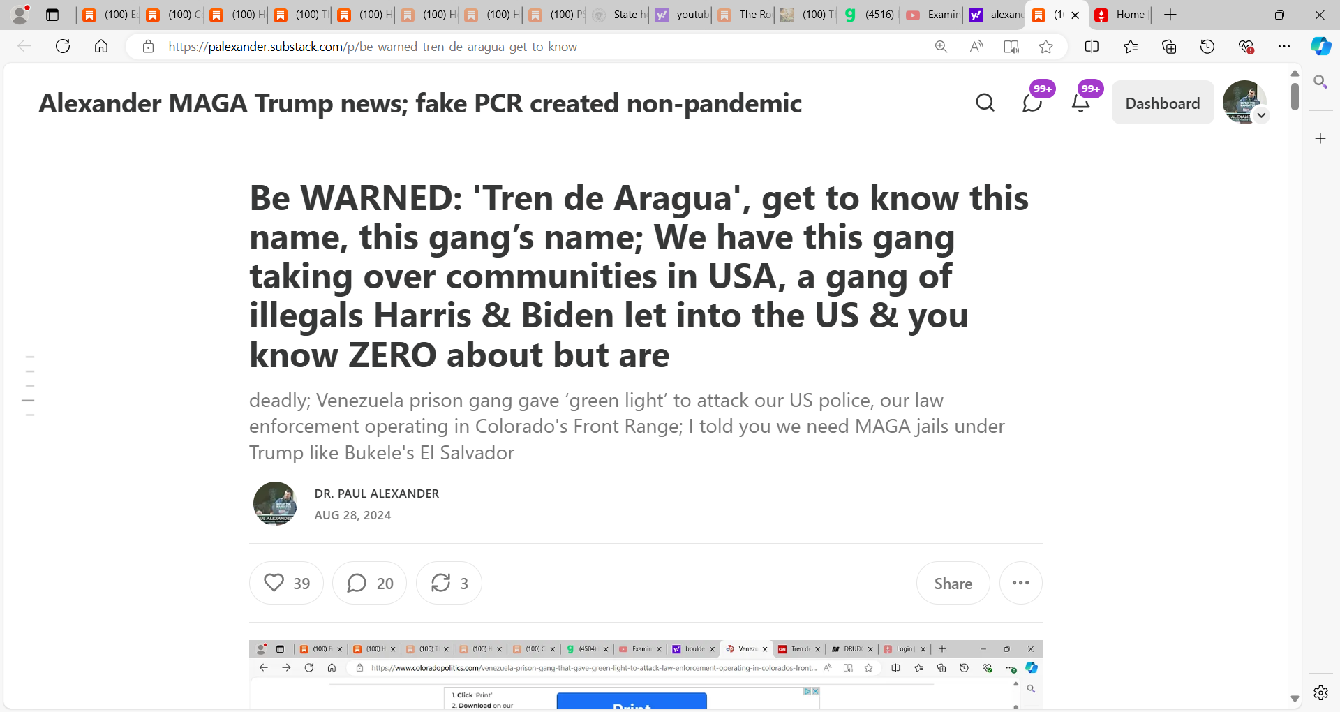 Tren de Aragua, I wrote about this criminal gang prior here in substack, see below; America, we have a problem, URRGENT! This is a LATINO version if ISIS, islamic jihadists; these are satanists, evil,