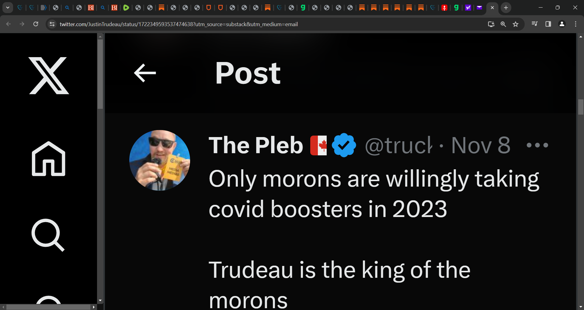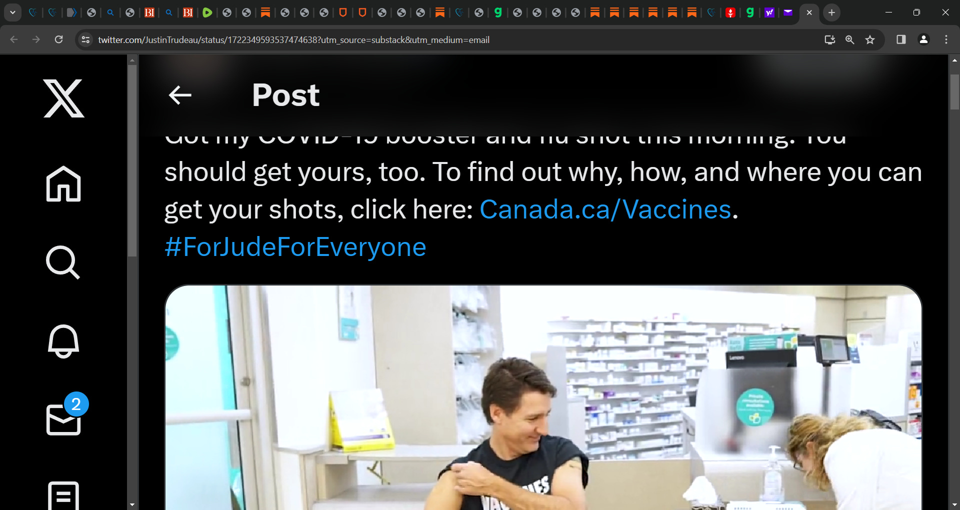 ‘Canada’s fearless leader and (dis)honourable Prime Minister Justin Trudeau took to X (formerly Twitter) to pledge his allegiance to BigPharma last week.