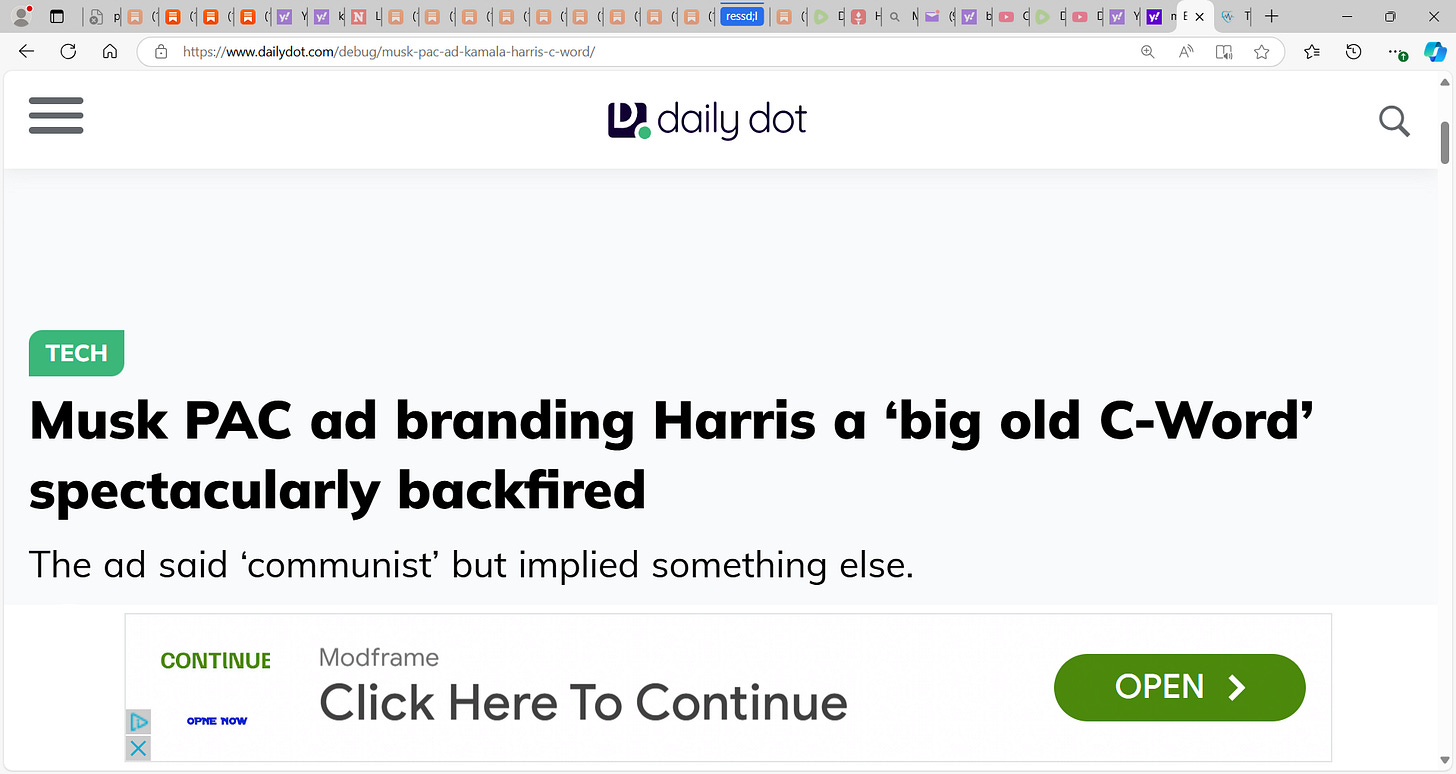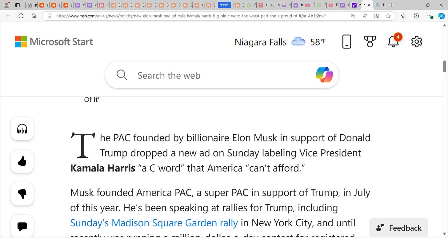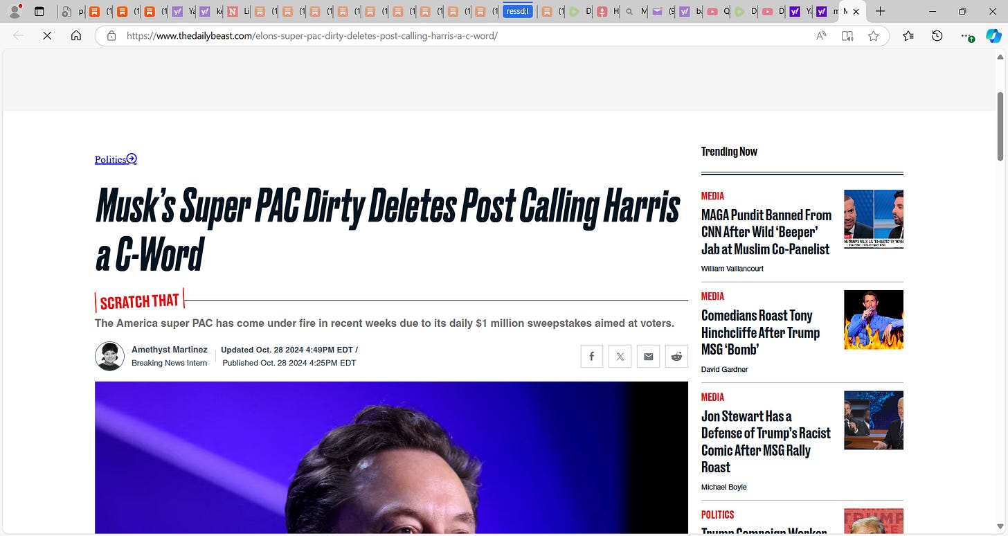 Now why did Musk PAC use the C word? For Harris. They knew the implication yet did that. Why? Why take this political risk now? Now more damage control for this. This was wrong.