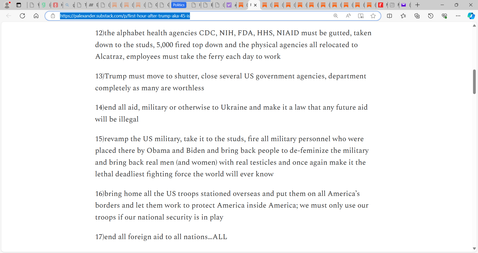 Trump must move to pardon and release 'ALL' J6 prisoners during the first hour of his swearing in as '47', POTUS Trump January 20th 2025, along with this list, these 20 items are his FIRST order of