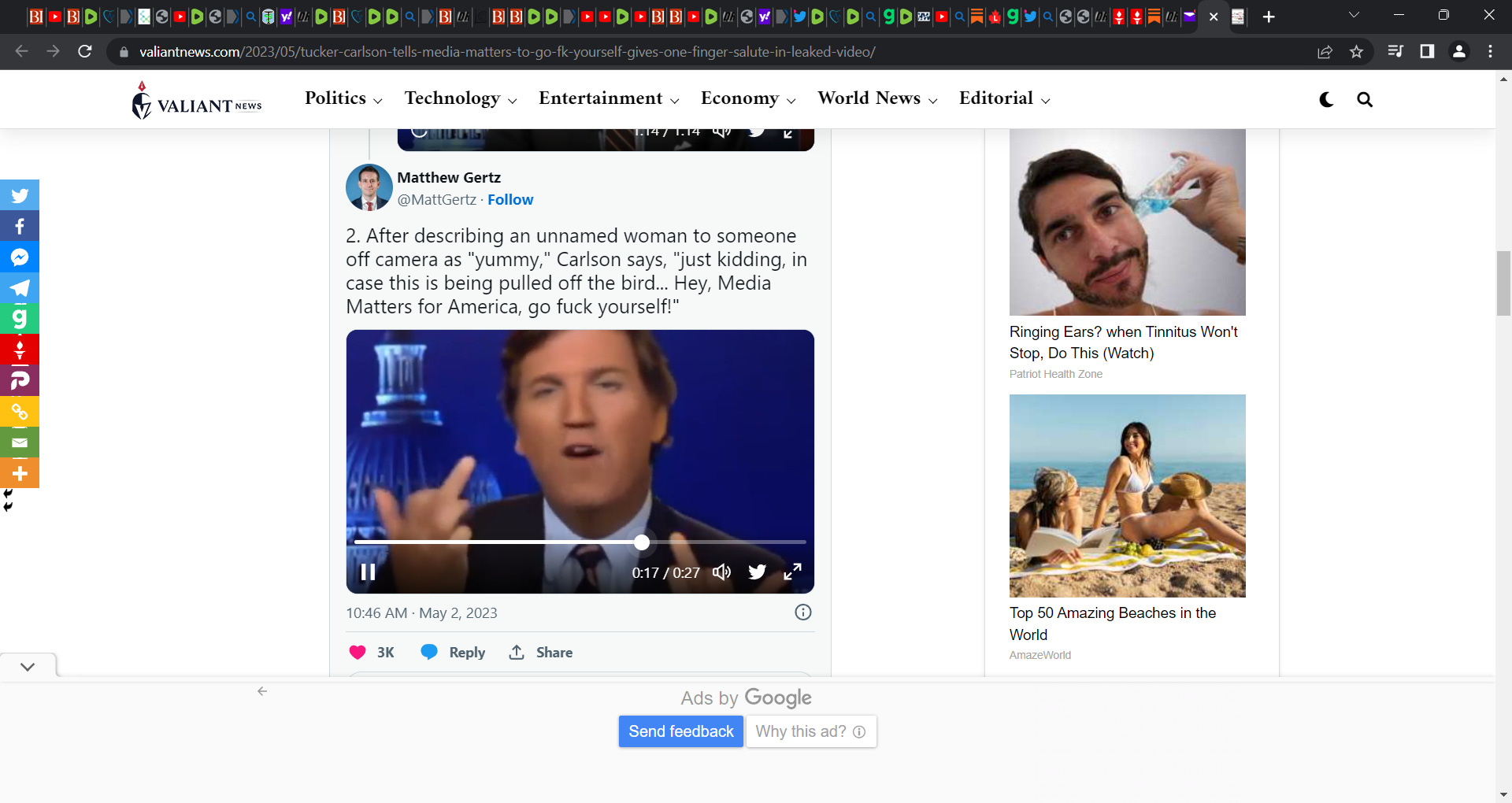 Tucker Carlson does the best thing I have seen in a while, gives Media Matters the double barrelled bird, he told them 'go fu*k yourself'! big props Tucker, I tell them that every day! I tell it to