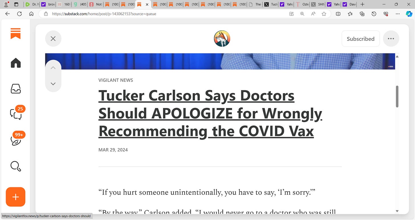 Tucker Carlson Says Doctors Should APOLOGIZE for Wrongly Recommending the COVID Vax (substack.com)