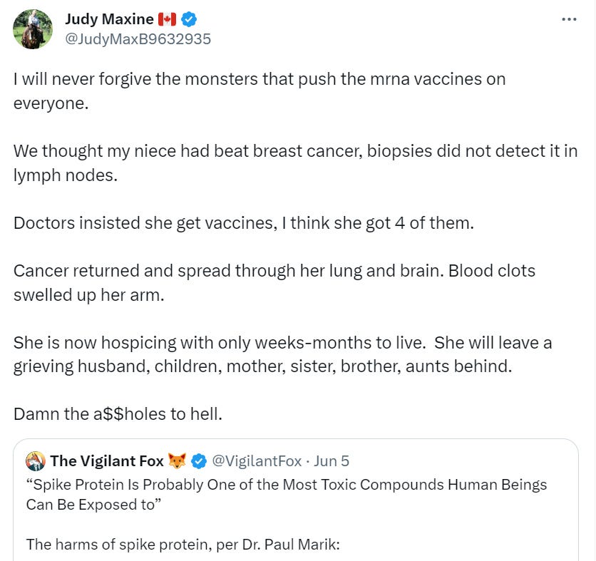 My uncle was recently diagnosed with cancer, which, to his credit, he attributes to his second COVID shot as that is when he started experiencing symptoms (thank goodness, he was smart enough to stop before getting any boosters, or he’d probably be dead by now).