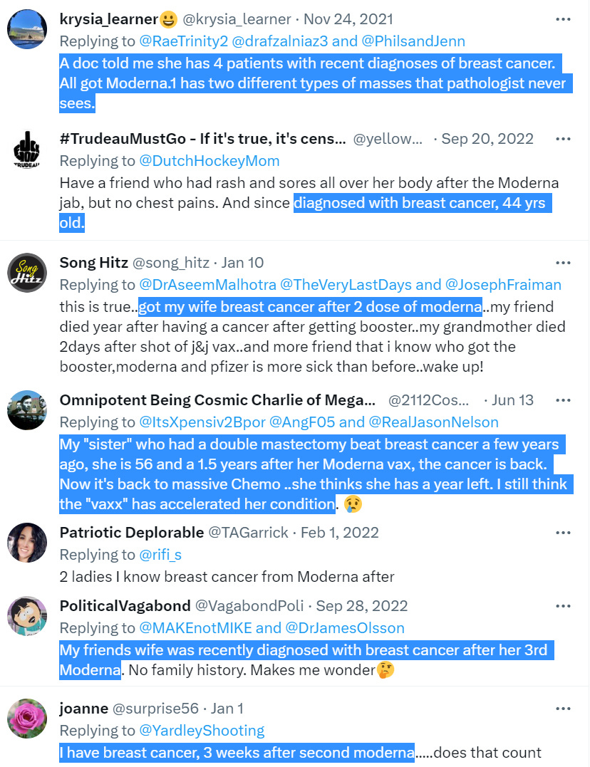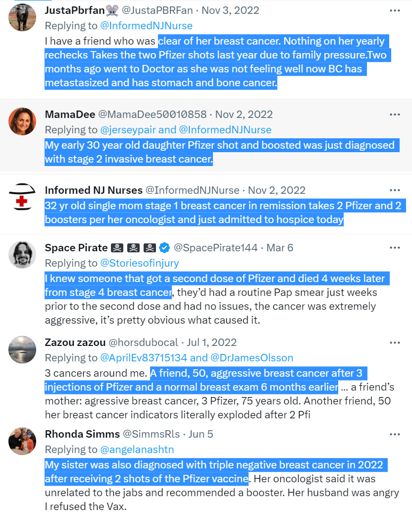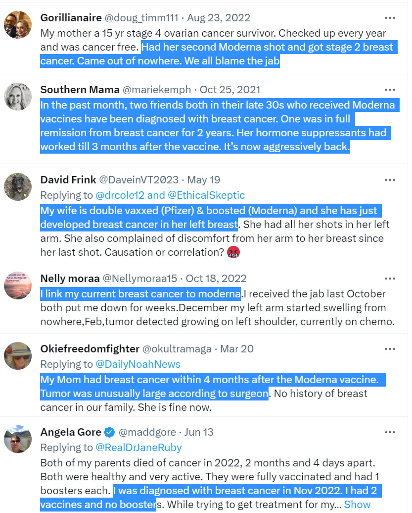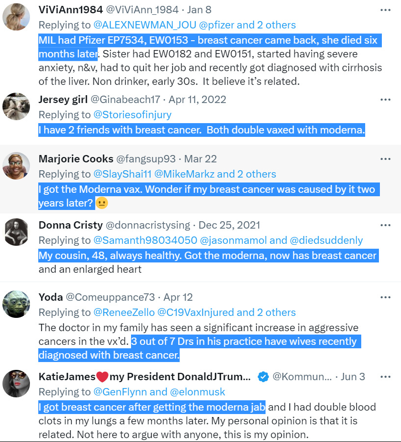 Endless Twitter reports of breast cancer after Pfizer or Moderna mRNA jabs: