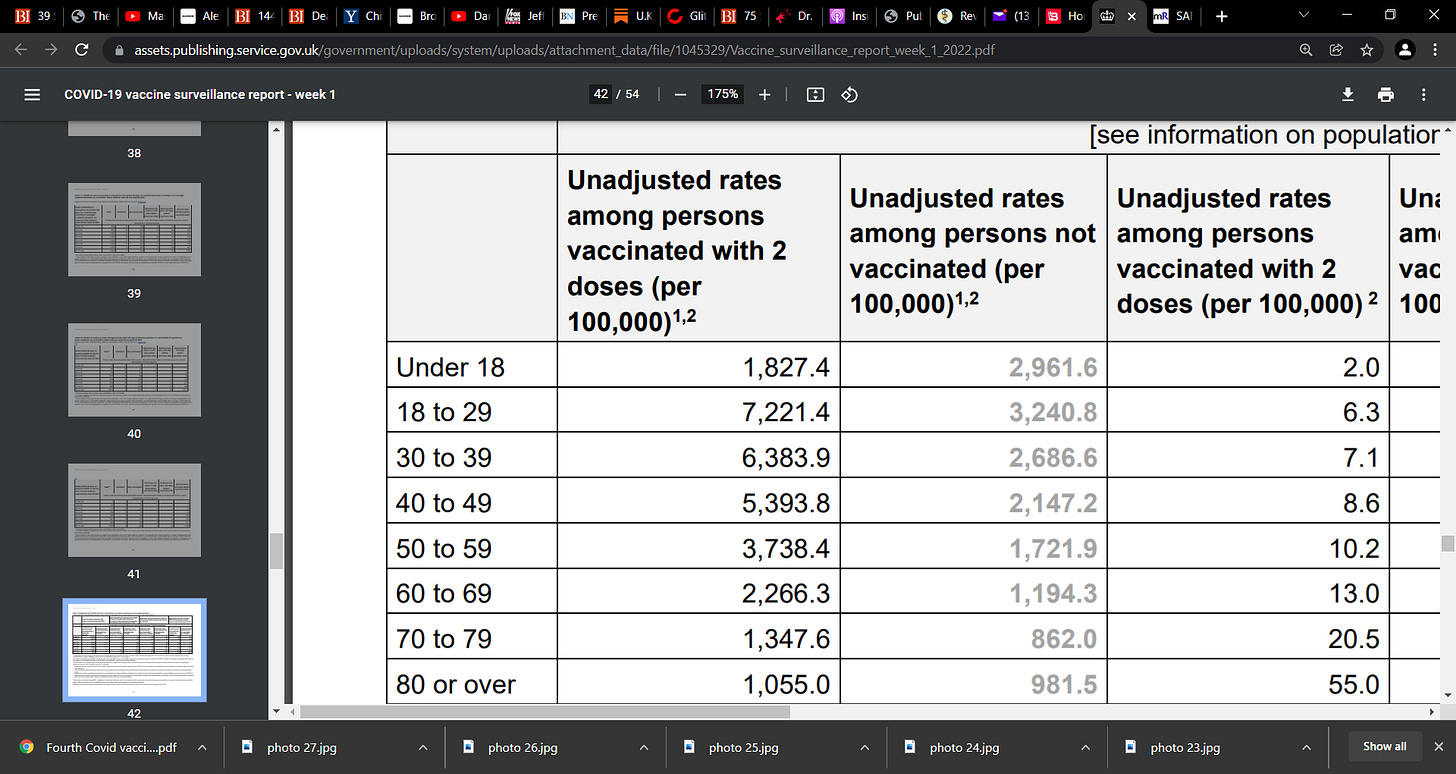 NEGATIVE EFFICACY: U.K. Health Agency first “COVID-19 vaccine surveillance report” of 2022, collates infection rate data for the final weeks of 2021 (weeks 49-52); a DEVASTATING REPORT