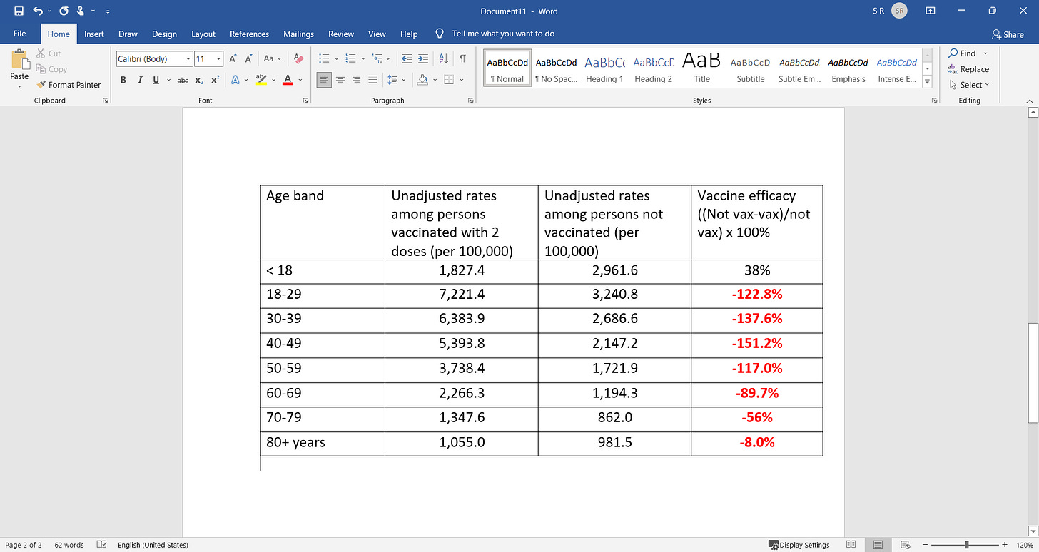 I have computed the vaccine efficacy in the following table and see all 18 years old and above, they are all significantly negative…this is catastrophic for the vaccine in the era of OMICRON….