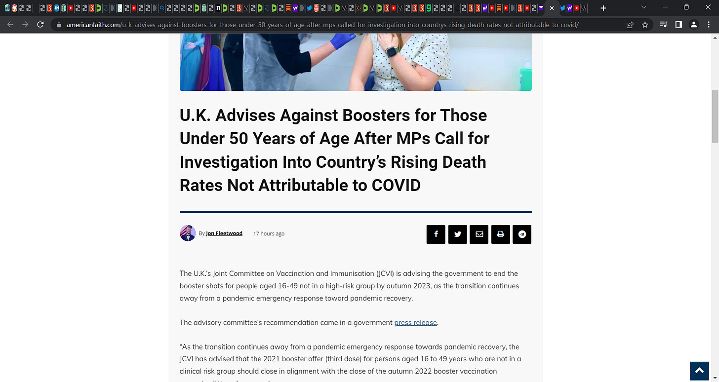 The motion to cease boosters in those under 50 came after British MPs called for an investigation into the rising death rates in Britain, as a significantly higher number of deaths than usual have been recorded each week.
