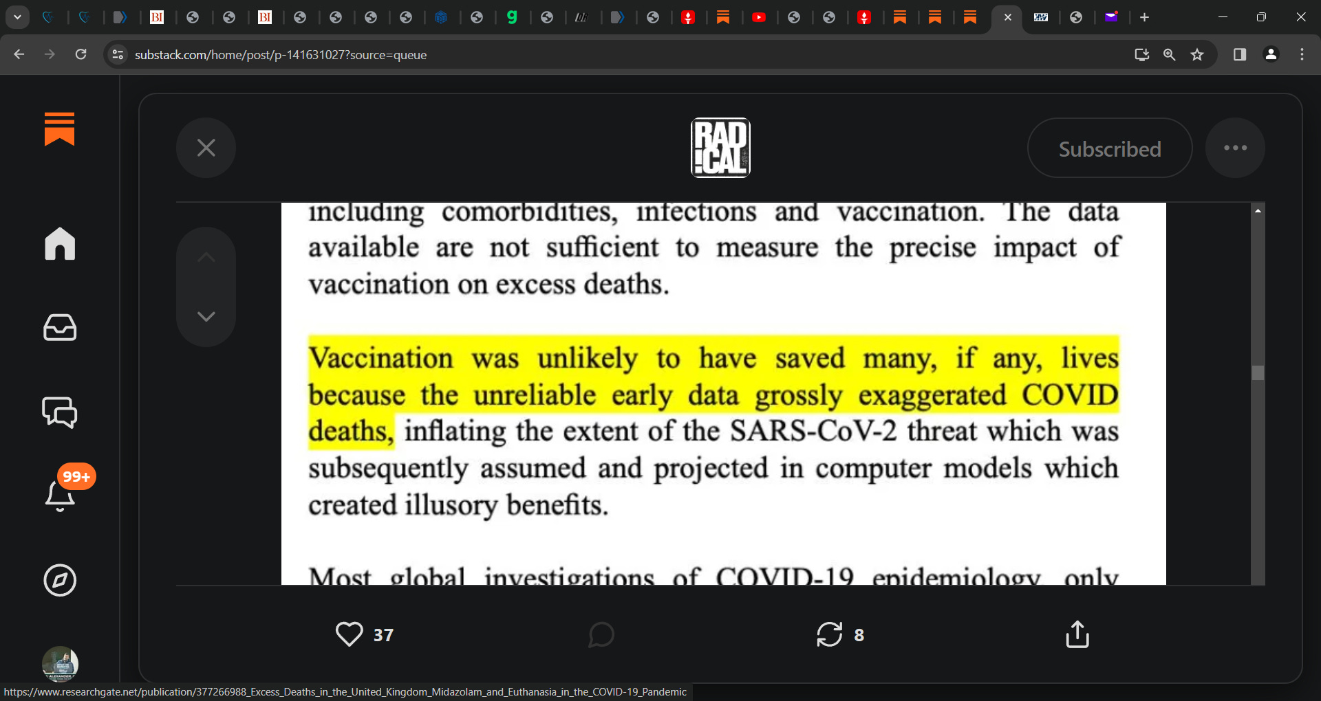 Over the last month Radical Media has been addressing the issue of global excess death coupled with increasingly alarming peer-reviewed research papers linking Covid vaccines to multiple serious health problems. When considering the possible causes for this confirmed global excess death, Radical Media presented two options.