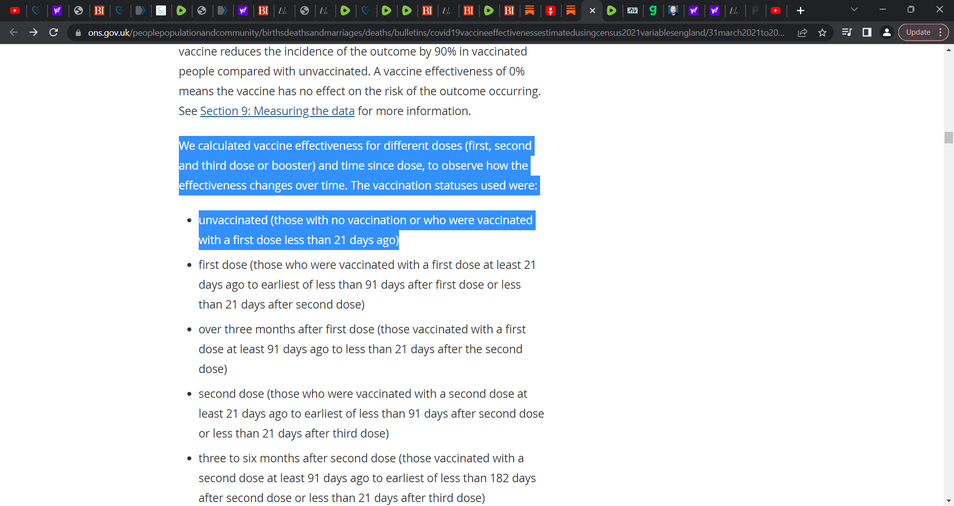 UK's ONS report: "COVID-19 vaccine effectiveness estimated using Census 2021 variables, England: 31 March 2021 to 20 March 2022"; look at how vaccinated versus unvaccinated status was defined