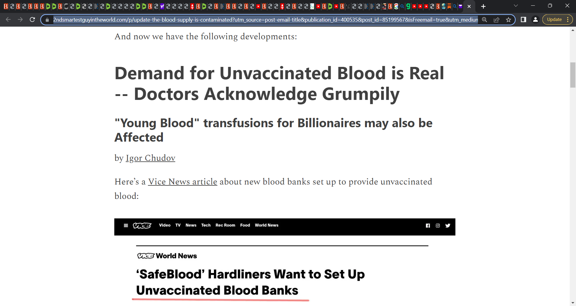 Unvaccinated Blood: It is your right to demand and source unvaccinated blood now for yes, Igor is right, the blood supply is damaged now and high risk; I won't want blood from a vaccinated person