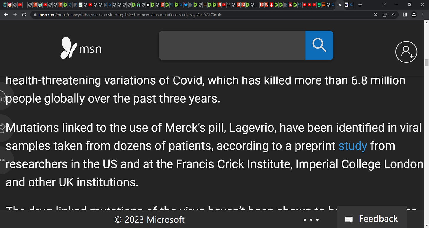 URGENT: Molnupiravir (Lagevrio) made by Merck is driving mutations of COVID virus and mutations are likely infectious and can be lethal! see pre-print by Sanderson et al.; failed drug like PAXLOVID
