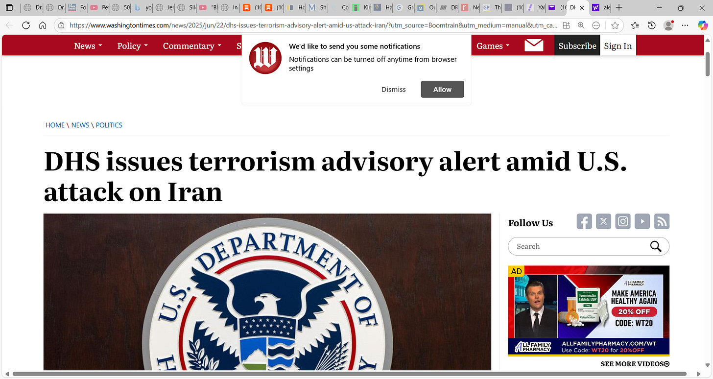 URGENT! PSA...DHS issues terrorism advisory alert amid U.S. attack on Iran; it is expected Iran & terror cells & malevolent people will strike back & hurt and kill Americans so we MUST be careful now;