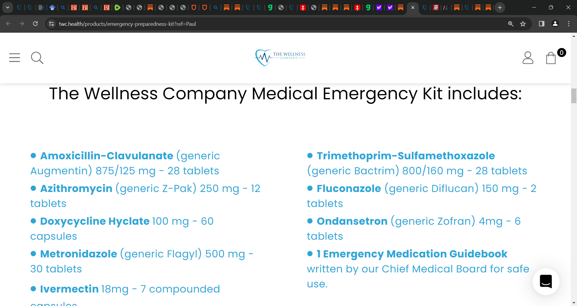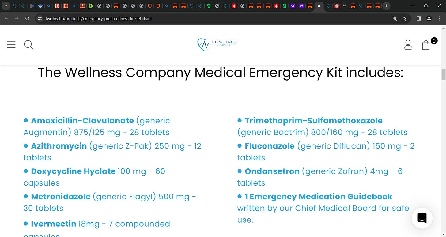 The kit (as one potential solution so that you are not caught off-guard and the pharmacy does not stock or ran out of supply or the pharmacy is belligerent and uncooperative as seen during COVID) contains 8 drugs for your medicine chest if in case an emergency arises and you should be prepared (the contained medication handbook is critical to guide you):