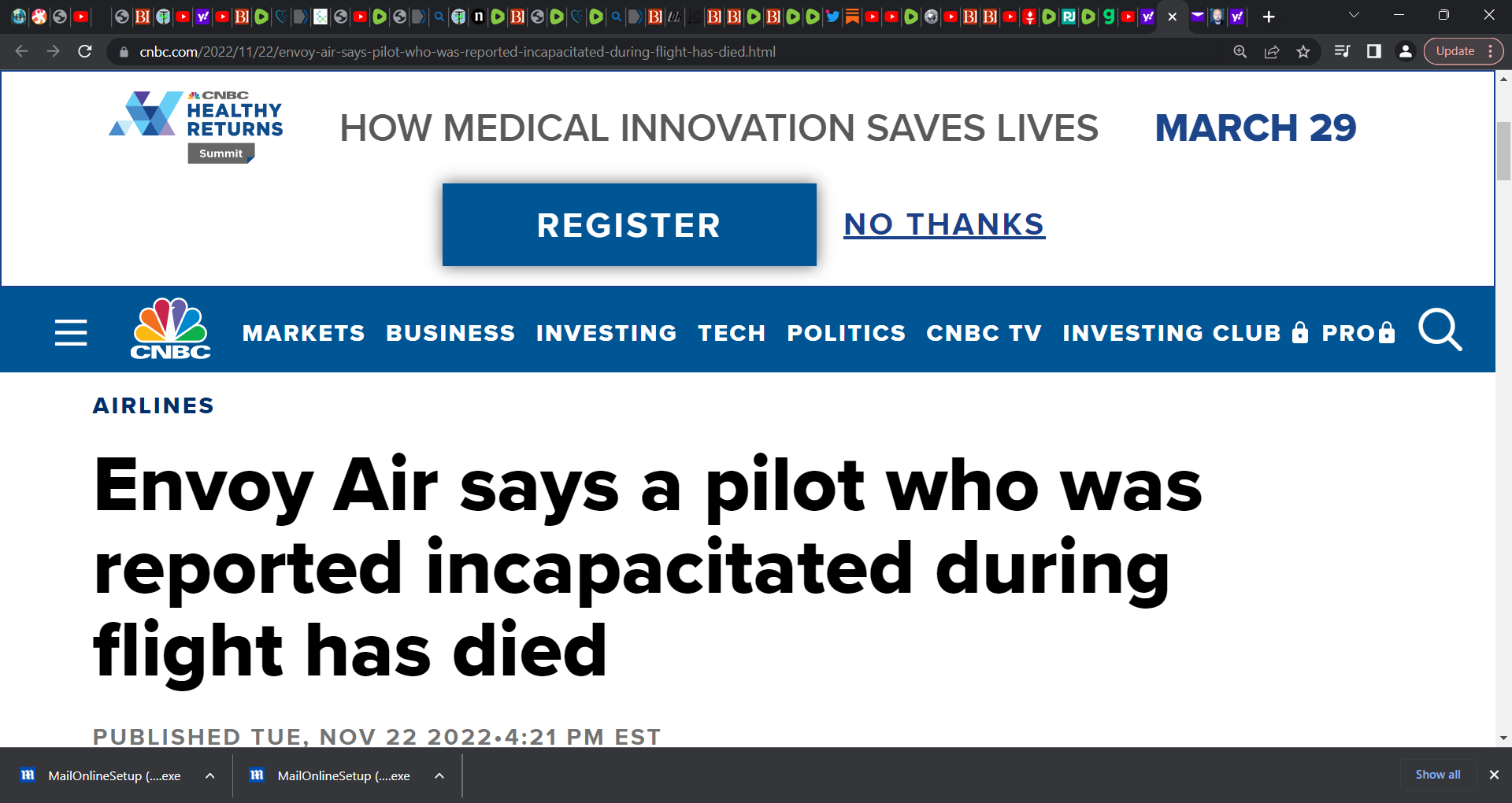 Are they actually trying to cause a major air disaster with these disease-causing, spike-protein bioweapon factories? Seems so to me. One pilot? If pilots are struggling, has the vaccine itself damaged and impacted the thousands of air-traffic controllers in terms of mental function, speed of reactions, and processing and especially in the constant stressed environment if they have silent myocarditis and thus scarred hearts? Are we sitting on a powder keg?