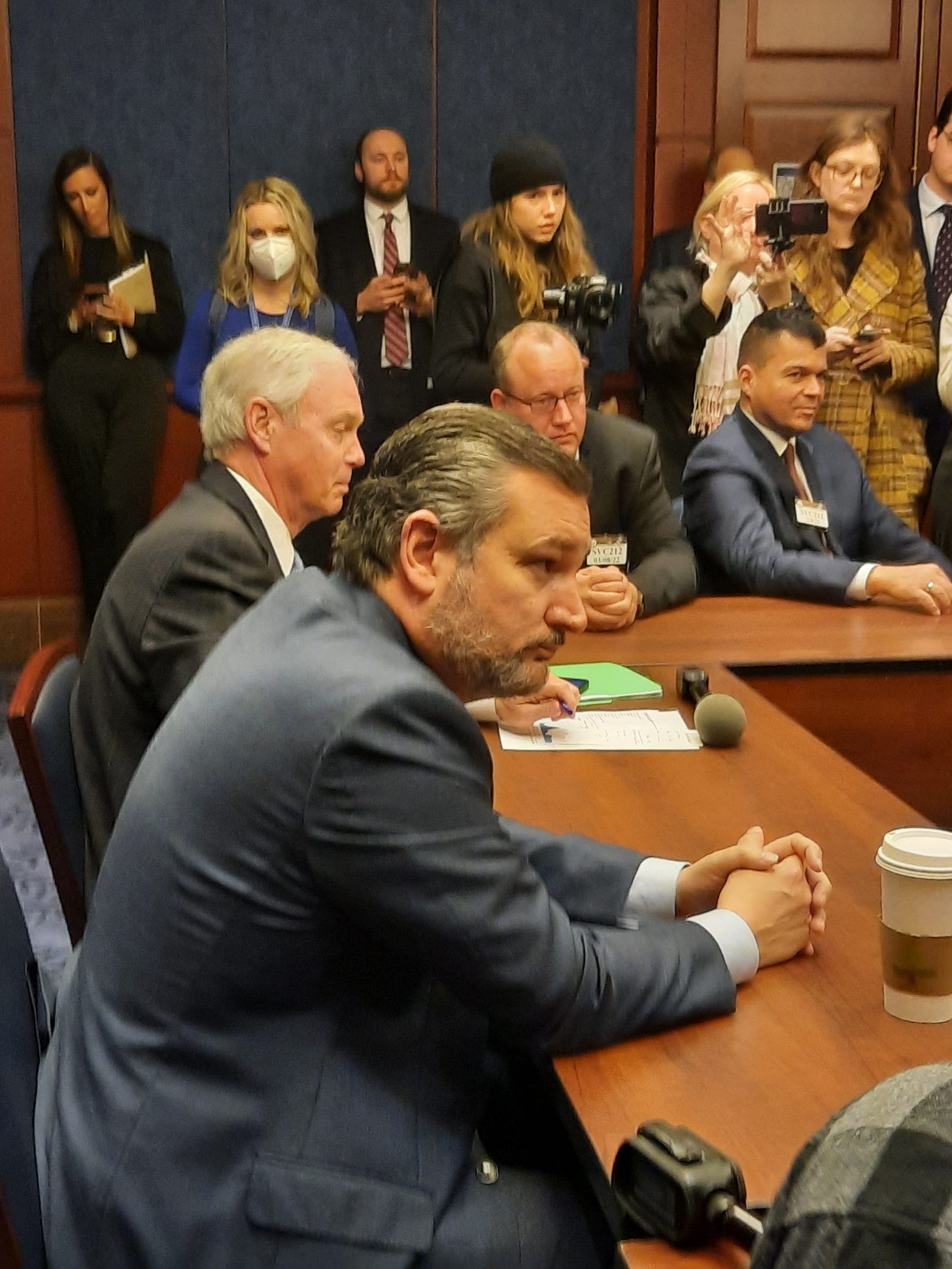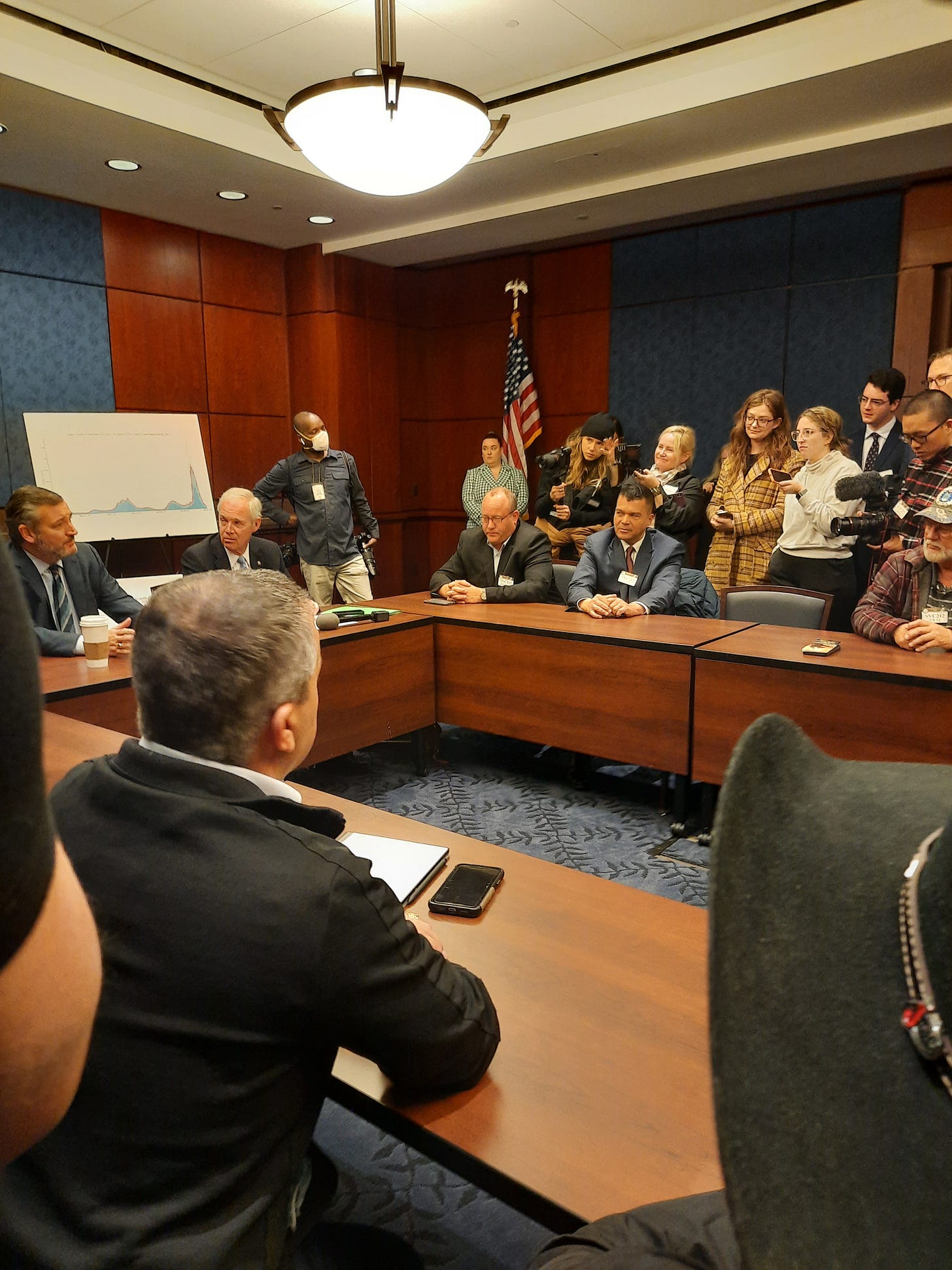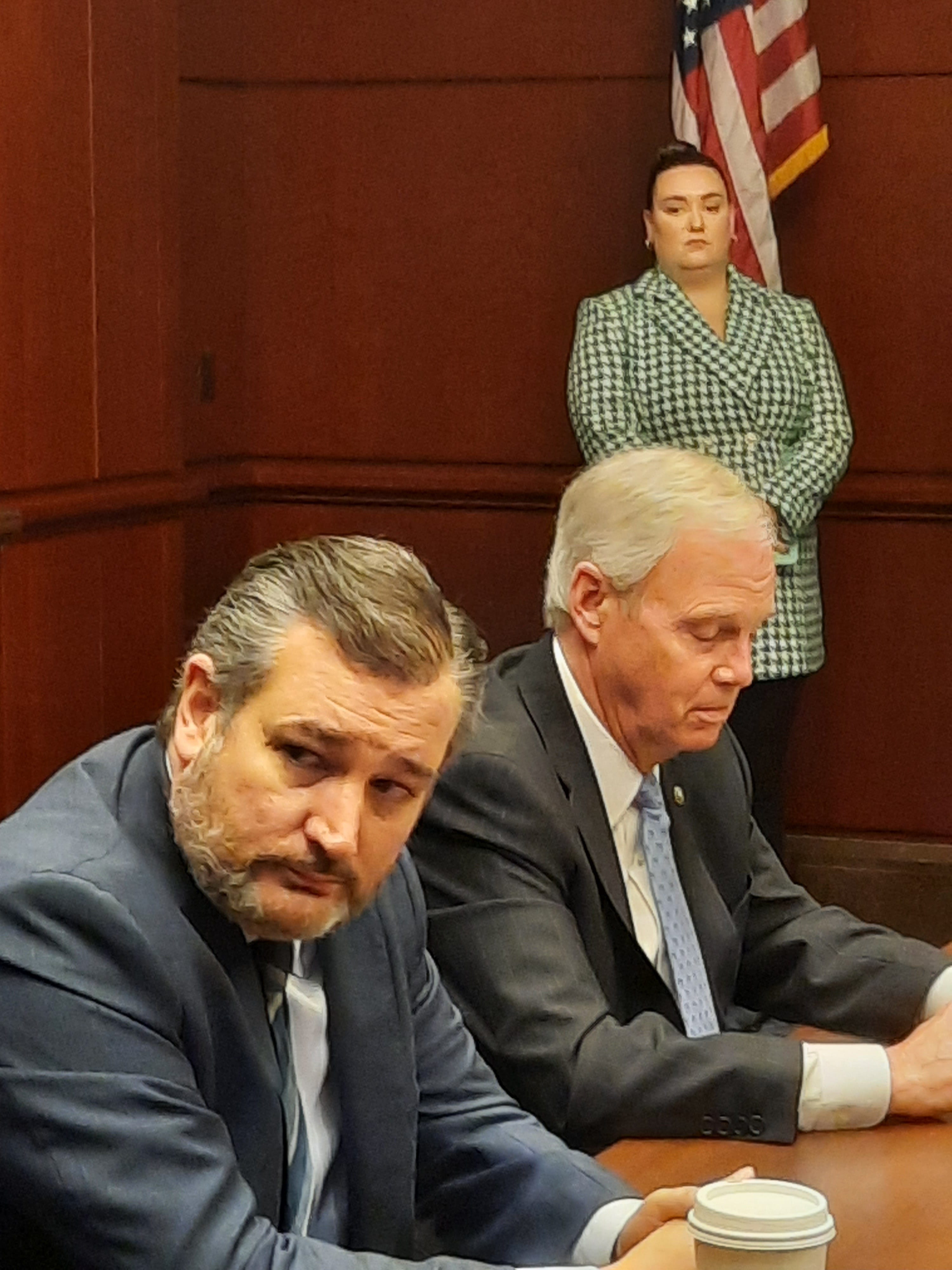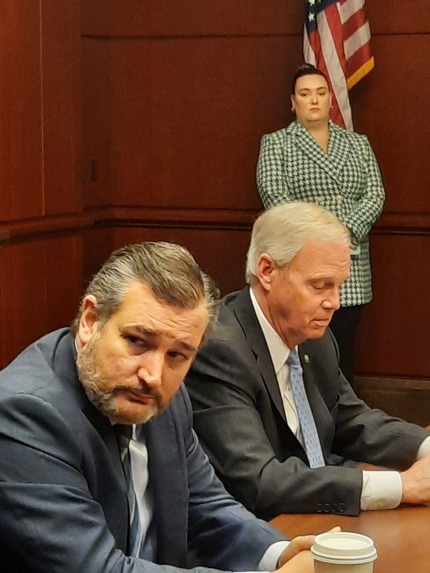 US Senate photos from today with the US People's Convoy Truckers, Senator Cruz, Senator Johnson, Pierre and I, and the press of course, March 8th 2022; I have videos to share as taped it all...