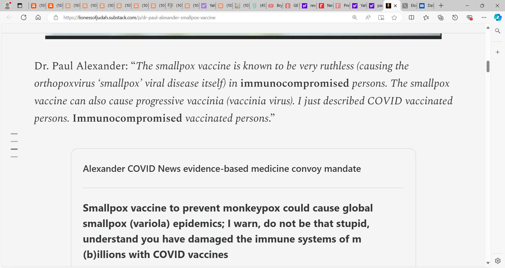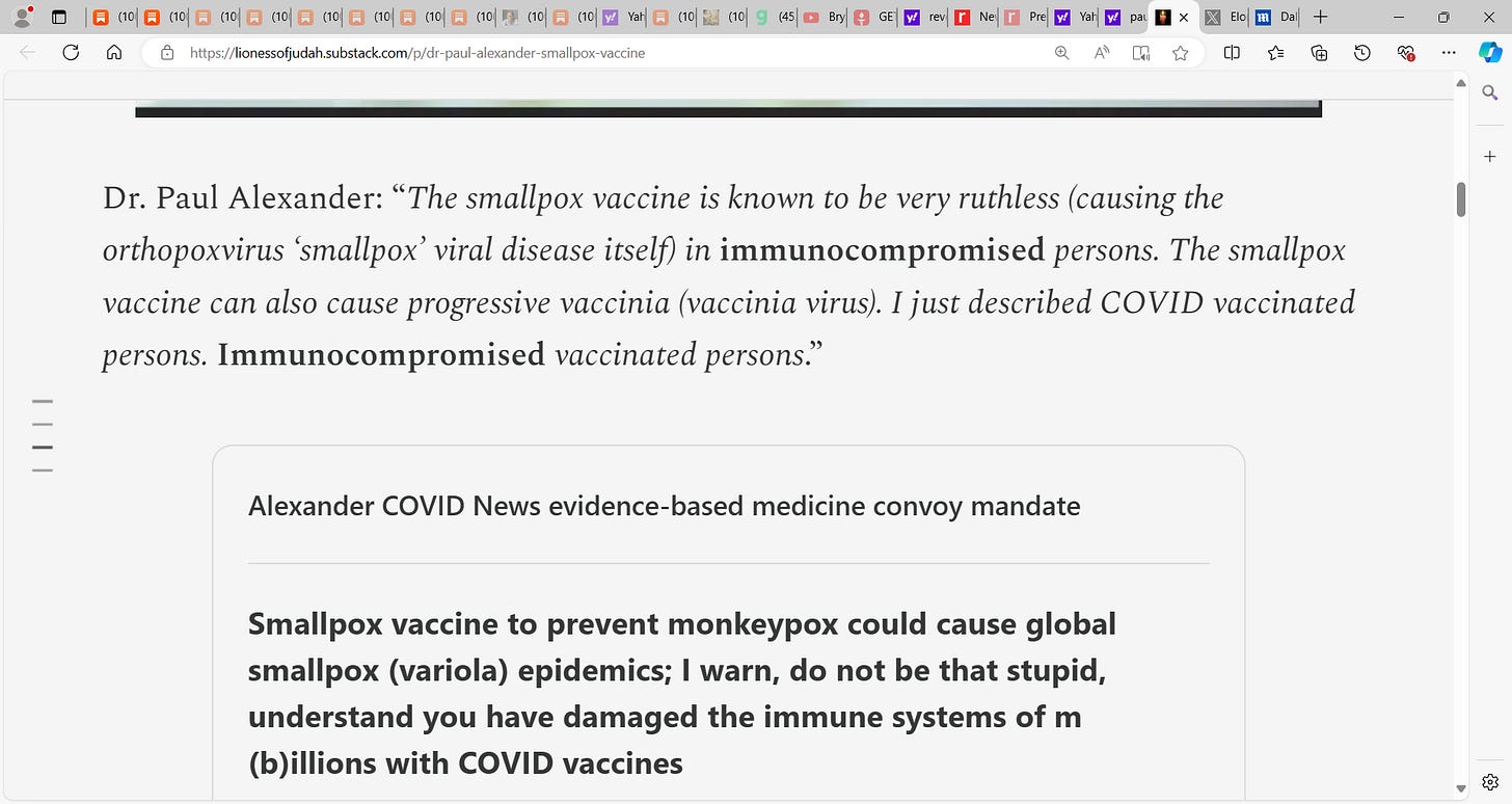 Experts are saying smallpox vax 85% effective in monkey pox; however, this is NOT good news, for millions/billions are now immunocompromised from COVID vax…