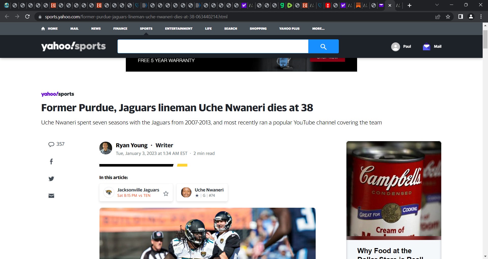 ‘Nwaneri was at his wife’s home in West Lafayette, Indiana, after driving up from Georgia last week when he apparently collapsed, according to the Lafayette Journal and Courier. His wife found him unresponsive in a bedroom around 1 a.m., per the report, and called police. Preliminary results from an autopsy indicate a possible heart attack. Officials have found no signs of foul play.’