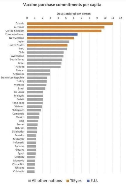 Vaccine purchase commitments per capita, what do you think? Does it make sense about Canada now and Trudeau and his emergency power grab insanity? Dr. Paul AlexanderFeb 16, 20229037Share