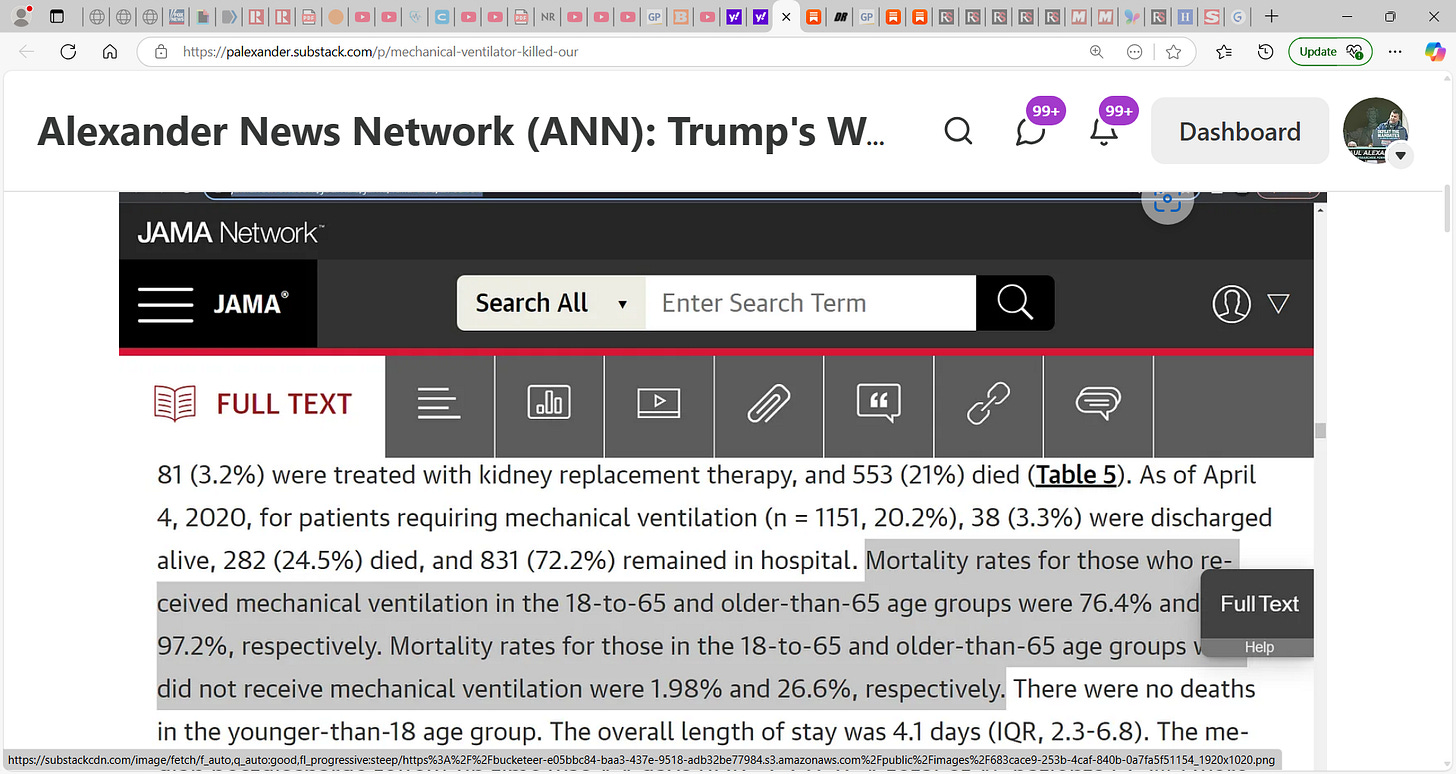 April 2020 Study Found That Most New York Covid Patients on Ventilators Died; Mortality rates for those who received mechanical ventilation in the 18-to-65 and older-than-65 age groups were 76.4%