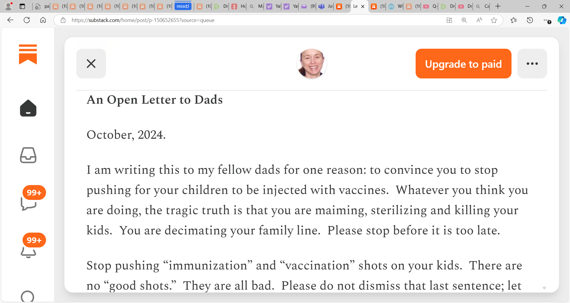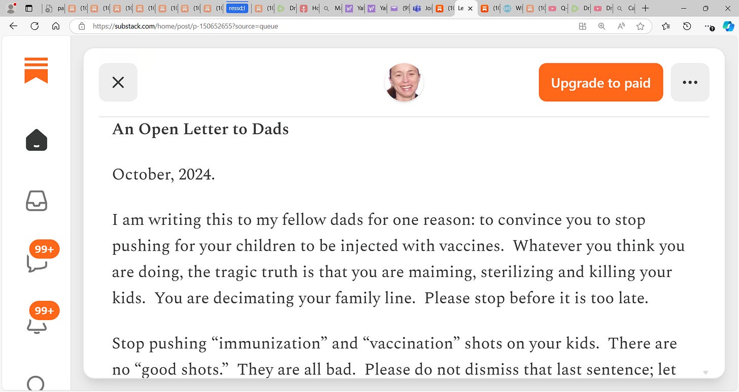 Very excellent letter shared by Sasha Latypova, a clarion call to FATHERS to NOT vaccinate their children given strong evidence of the harms. " writing this to my fellow dads for one reason: to
