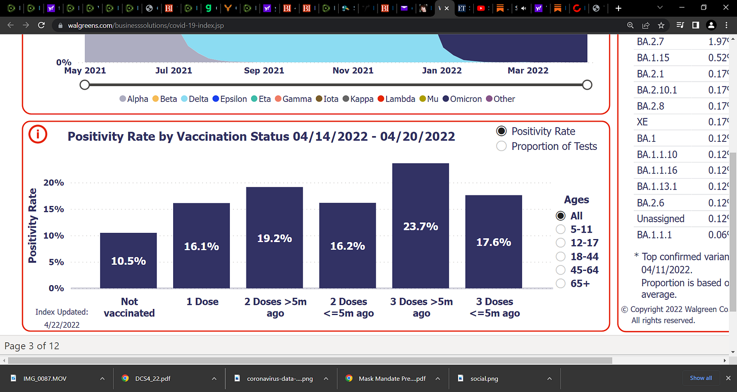 Walgreens COVID-19 Index as of 20th April 2022Look at the unvaccinatedDr. Paul AlexanderApr 23, 20228919ShareSource:Walgreens, up to April 22, 2022