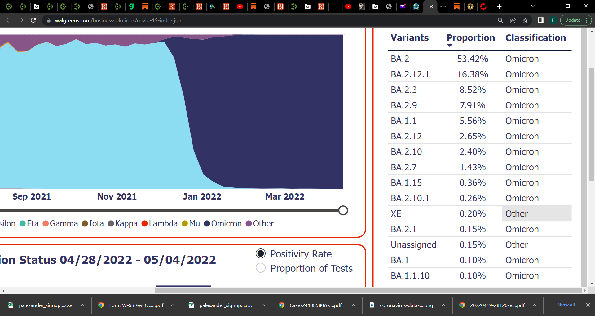 Walgreens COVID-19 Index; variants BA.2 and BA 2.12.1 now represent the most infections/cases (BA 2.3 and BA 2.9)