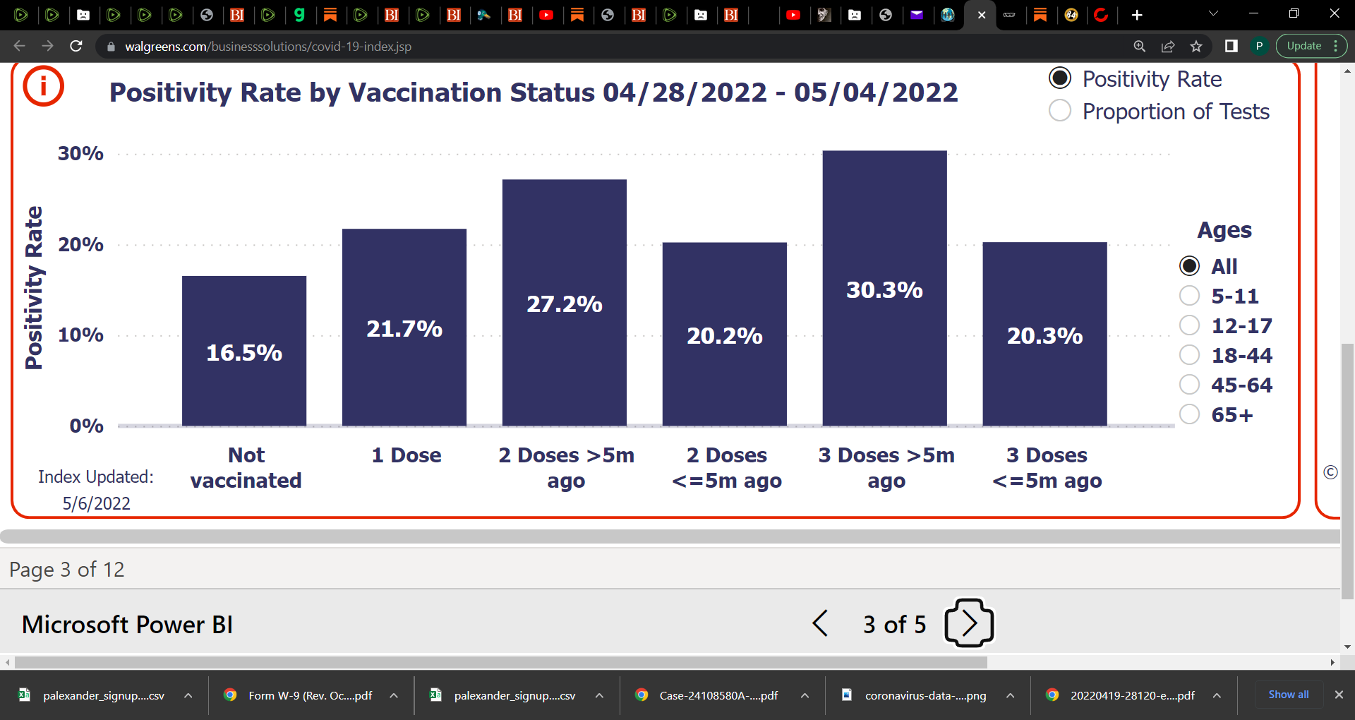 Walgreens COVID tracking data as up to May 4th 2022; the data shows clearly that more doses e.g. double & triple vaccinated and longer period e.g. > 5 mths, increases risk of infection dramatically