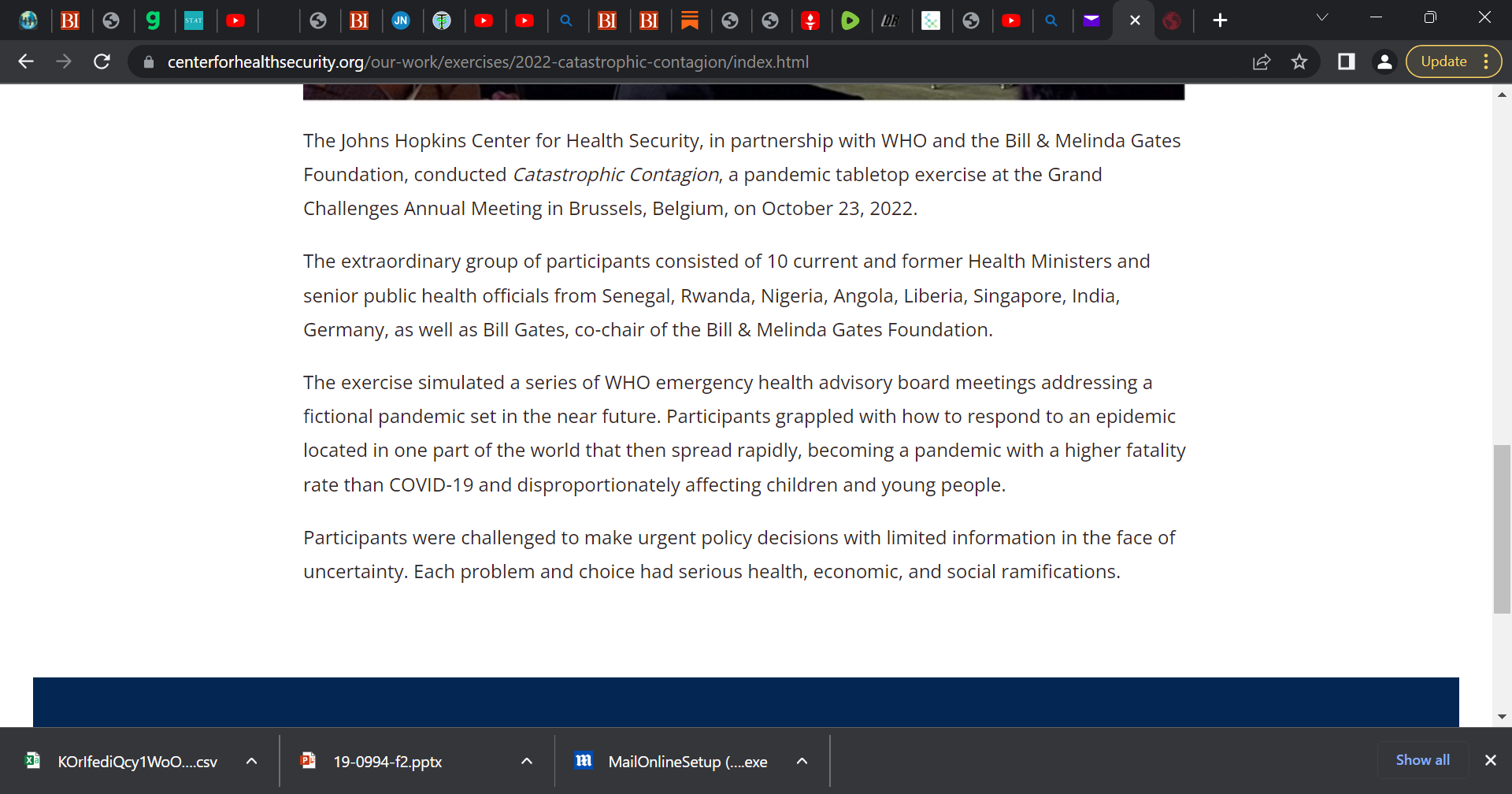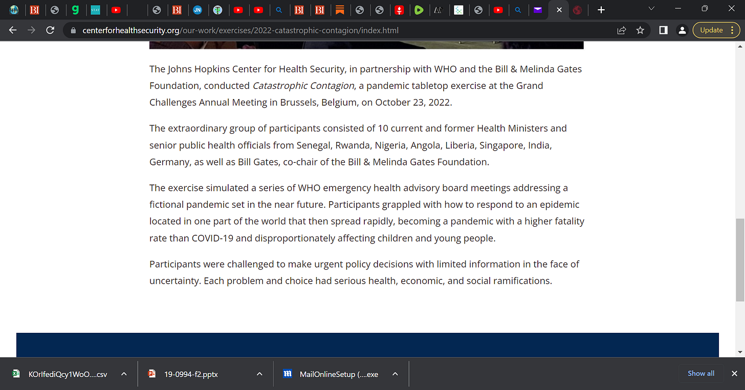 WARNING: Johns Hopkins tabletop exercise "Catastrophic Contagion" October 2022 using enterovirus pandemic simulation (children?); note, they did same thing for 'Event 201' simulating COVID in Oct 2019