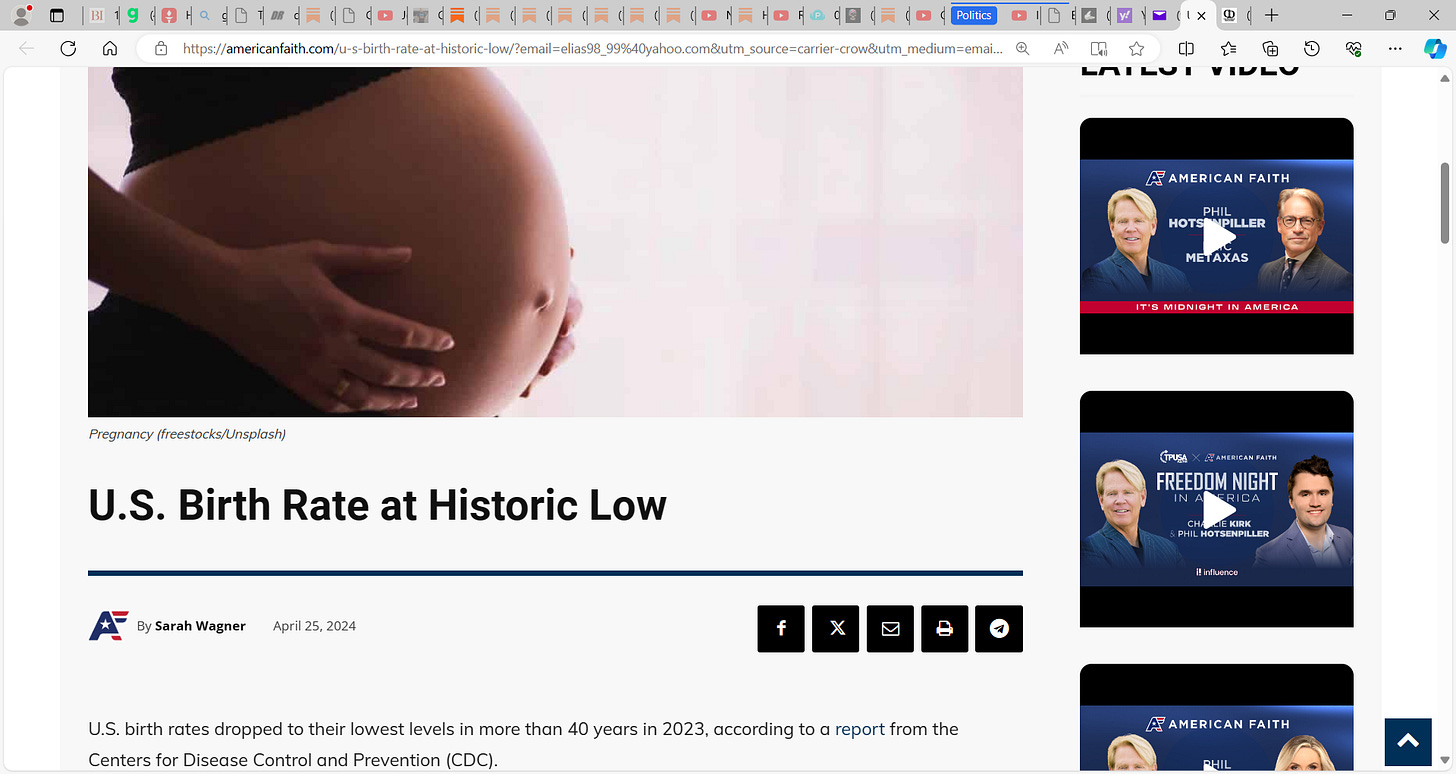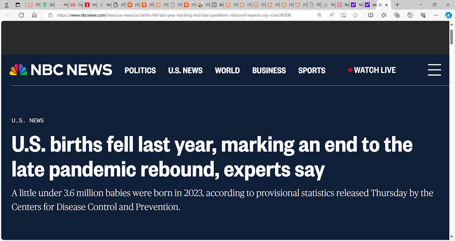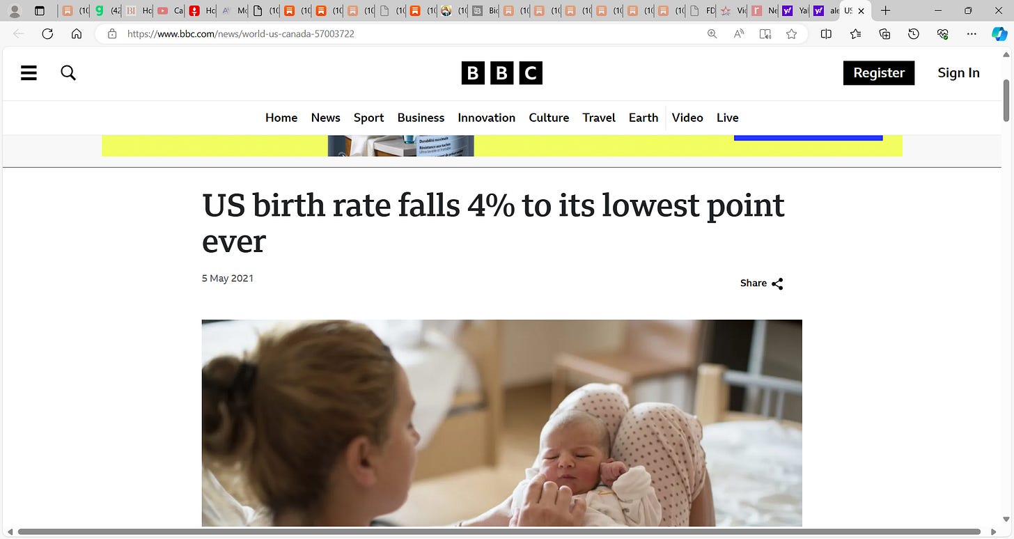WARNING: Reports today that US birth rate at historic low; the replacement rate is about 2.2 & we are about 1.6 to 1.8 in US, Canada! CATASTROPHIC, as other cultures OUT-BREEDING west, US will become