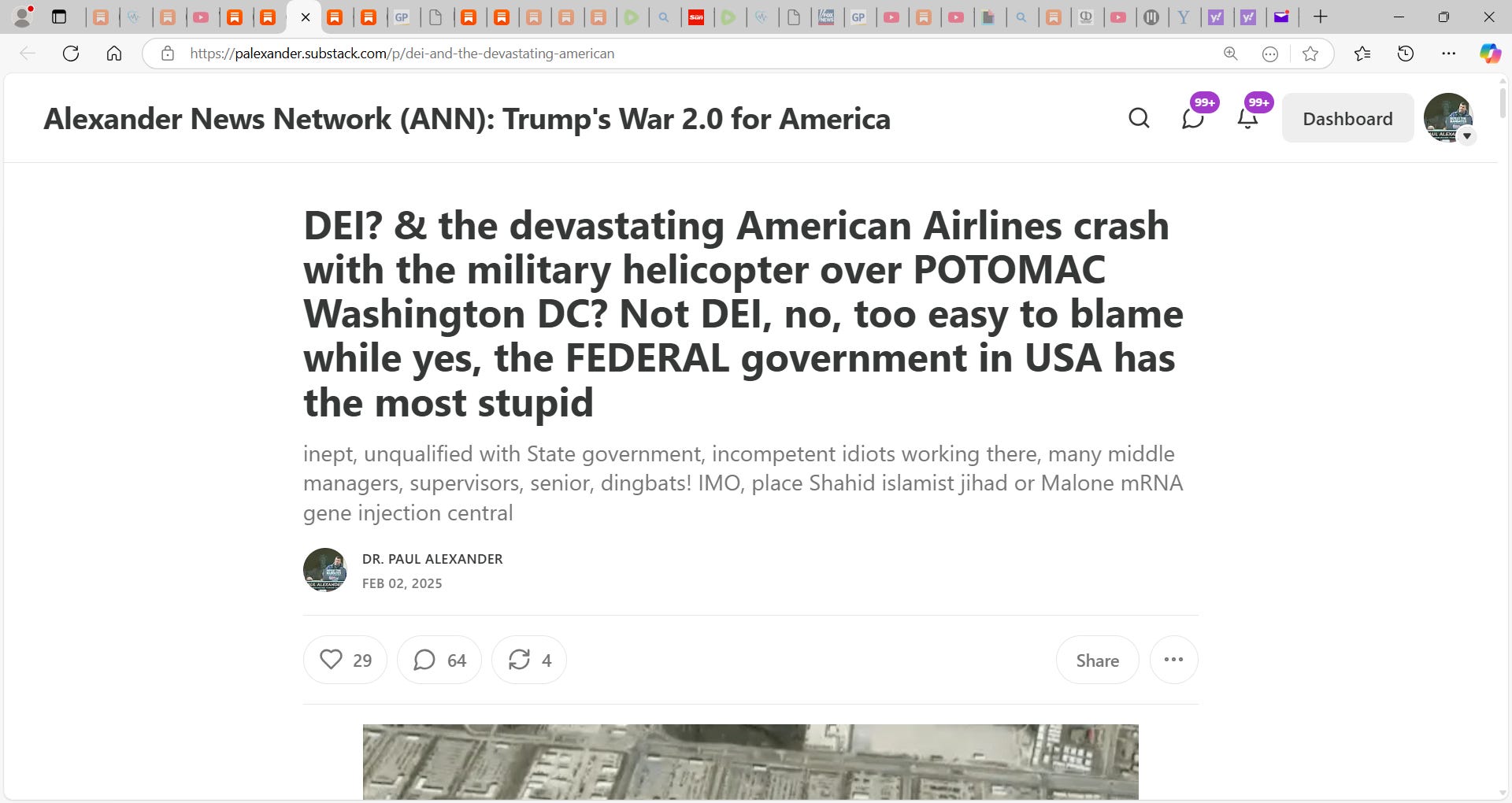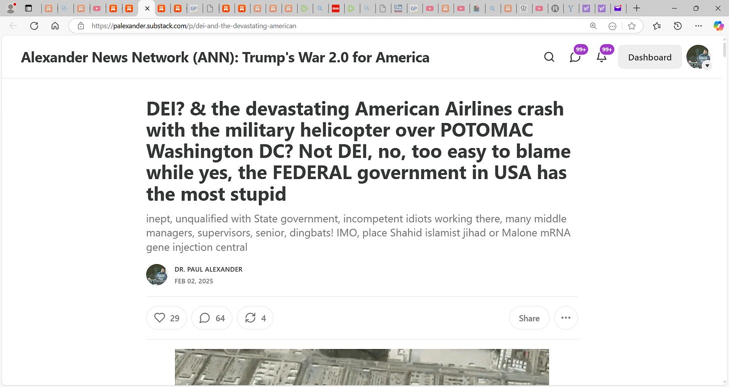 Was the crash really due to a sub-optimal poorly trained DEI hire? If so, POTUS Trump is correct to call it out and it is the wrong timing, IMO was insensitive the day after, but he is driving a discussion we must have. If DEI poor training and unqualified posture caused this, then this is a huge problem, and we must get at the bottom of this and stop it NOW! End it!