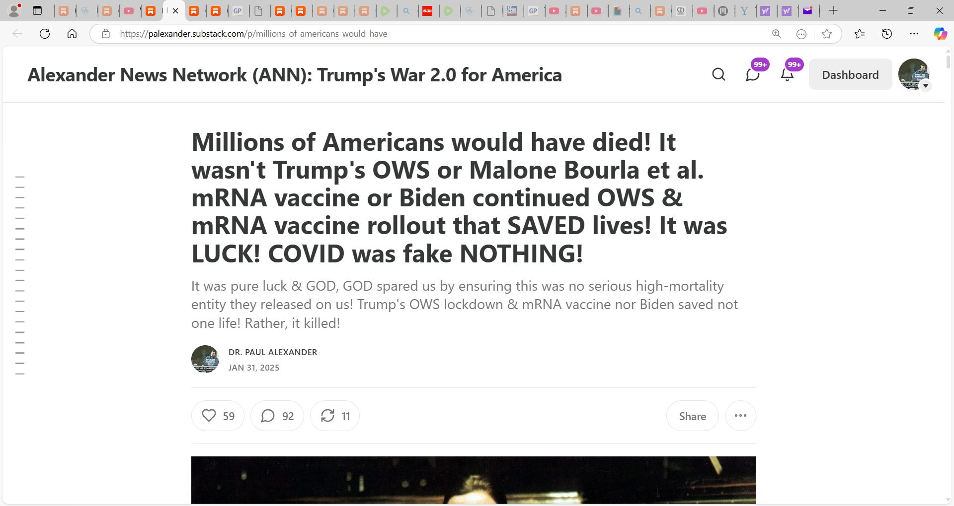 Dr. Paul, you are entitled to your opinions and I agree with most. There will always be(at least in my mind) a lot of questions about those killer shots, if they indeed change DNA, DID THEY MAKE SLEEPER CELLS OUT OF PEOPLE? They will be woken up with some type of alert to go out and kill? School shootings, random violence, it really sounds like the lefts world! They incite, they set it up and then they say we didn’t do it? For the rest of my life, I will always hold the demoncrats and Pelosi responsible for January 6th! She ran from Senate room before anyone else, then all demoncrats ran out in back of her! She has ties to Ray Epps, numerous phone calls between those two prior to 6th, she also has ties to ANTIFA who were dressed as TRUMPERS, and started the riots! She is also the one that refused to be put under oath and answer anything related to January 6th! We all have opinions on everything, and I for one am glad, it makes and keeps life interesting!