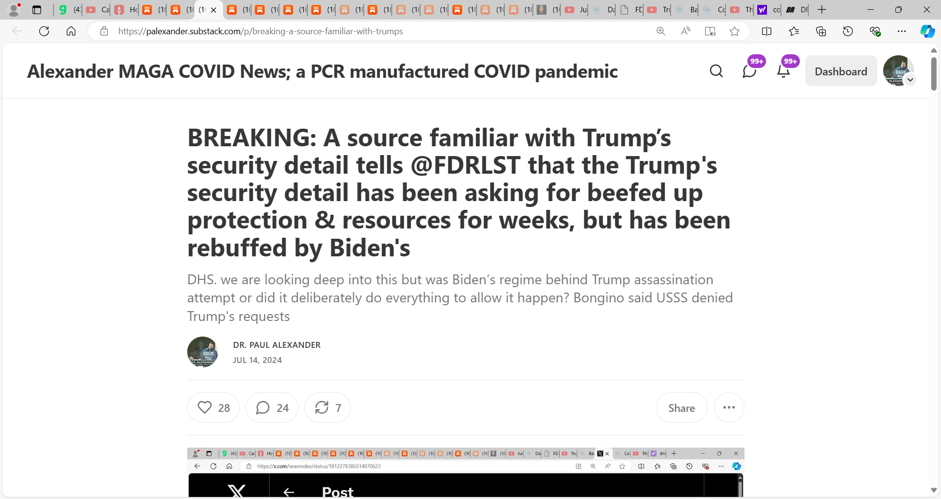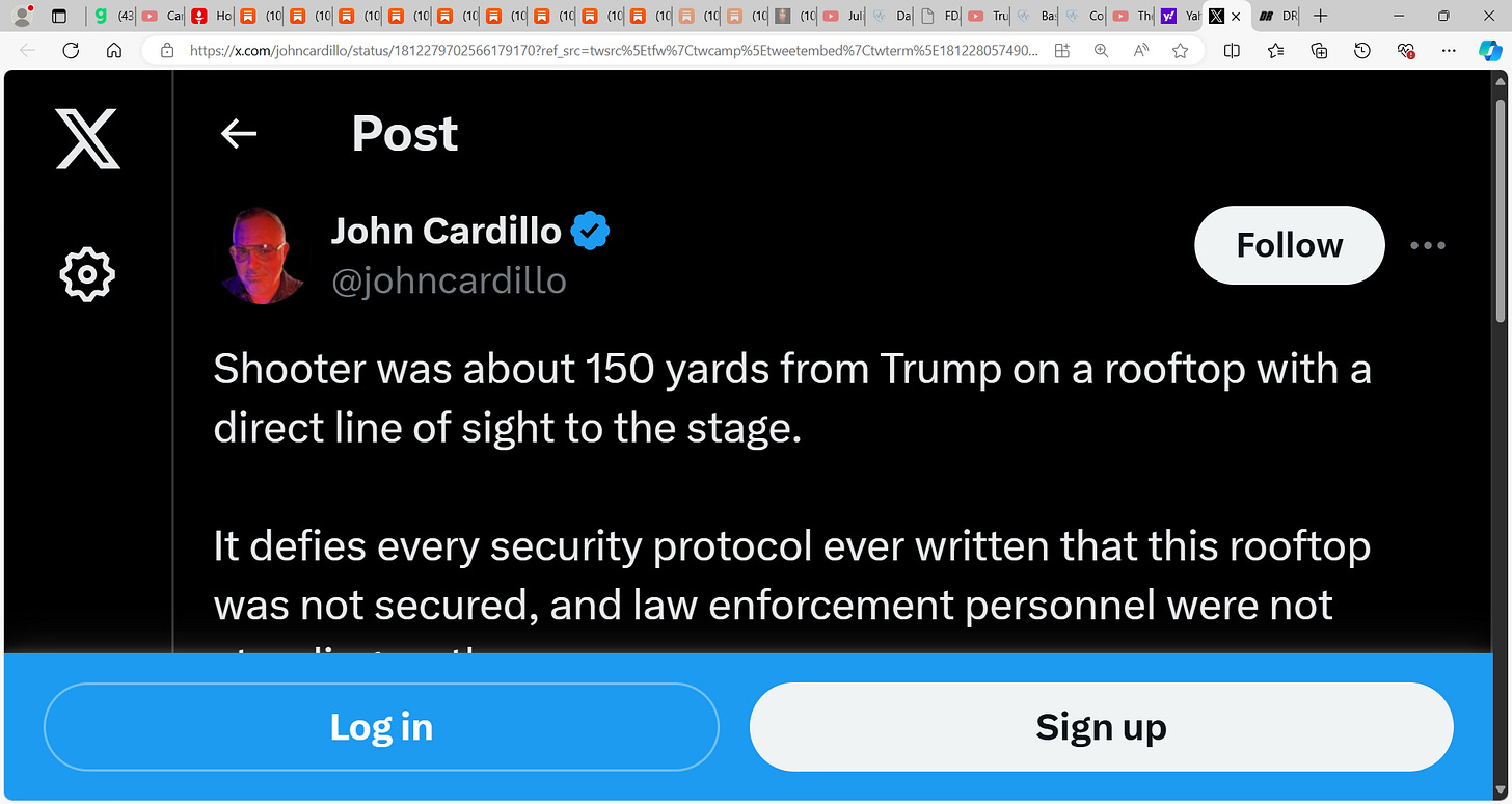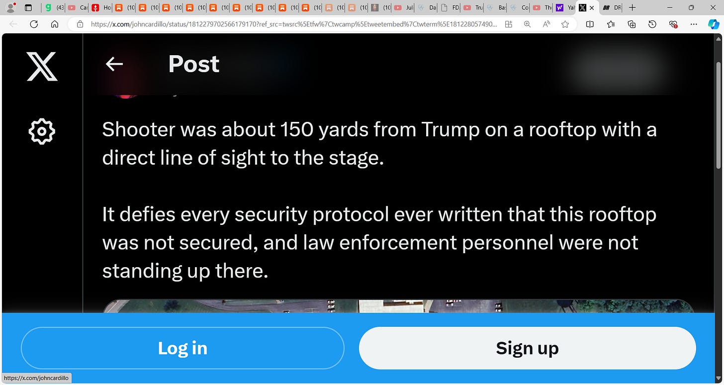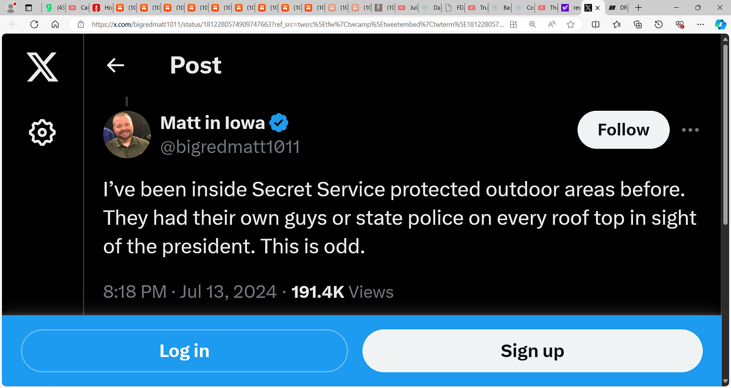How could the Secret Service (SS) make such a mistake? Was this an inside job? Was it designed this way? This was a failed assassination; he did hit Trump but failed; they SS killed a failed gunman in the end but dead men tell no tales?; Musk asks if deliberate? Elon Musk asks a difficult yet critical question. Shooter had direct line of sight to Trump and that is IMPOSSIBLE ordinarily for anyone to have a clear bead on a POTUS or ex-POTUS…understand it, a bullet pierced the skin of a living ex POTUS…it is never to happen…;