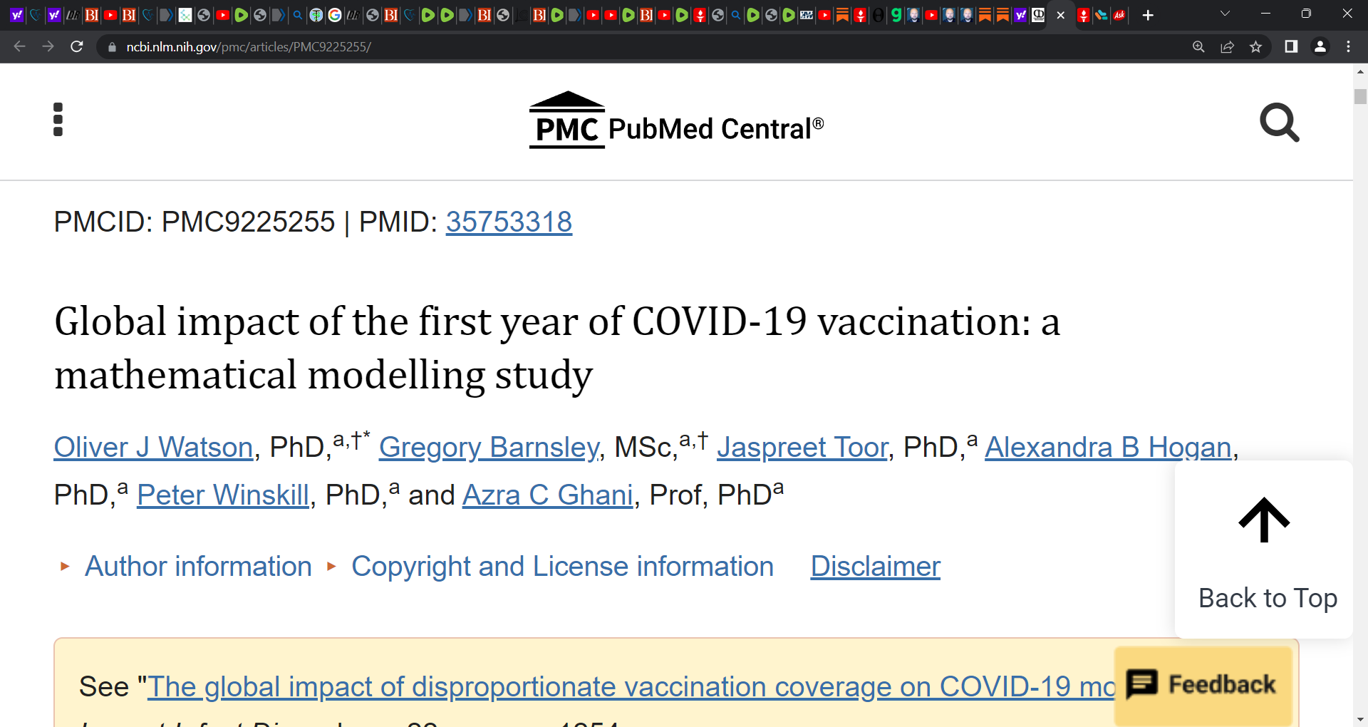 Watson et al. mathematical modelling study of COVID gene vaccination said that vaccinations prevented 14·4 million (95% credible interval [Crl] 13·7–15·9) deaths from COVID-19 in 185 countries