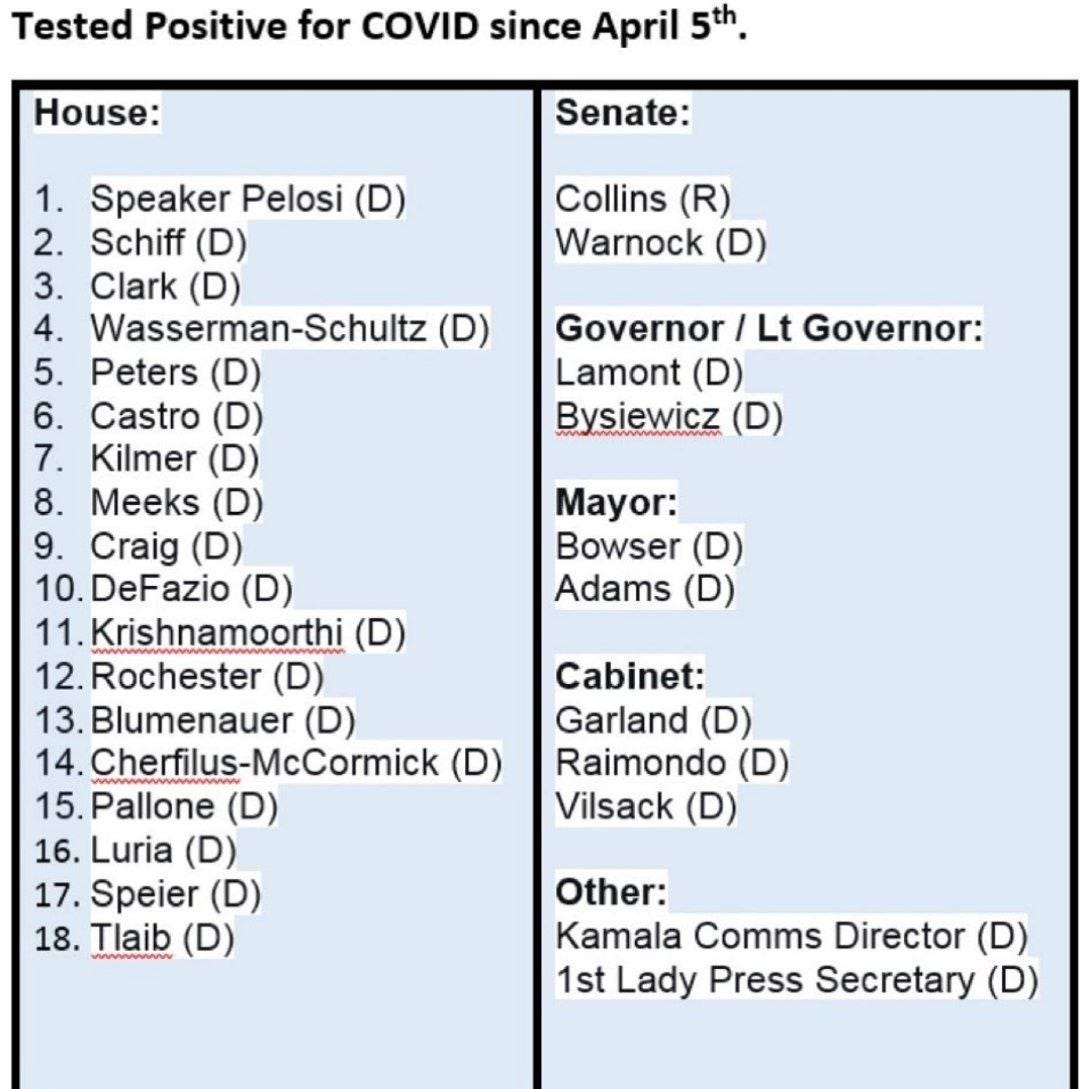 See this exchange between Geert Vanden Bossche and myself and see those senators and congresspeople who have tested positive now, after being double and triple vaxxed; Obama is left off and Hilary