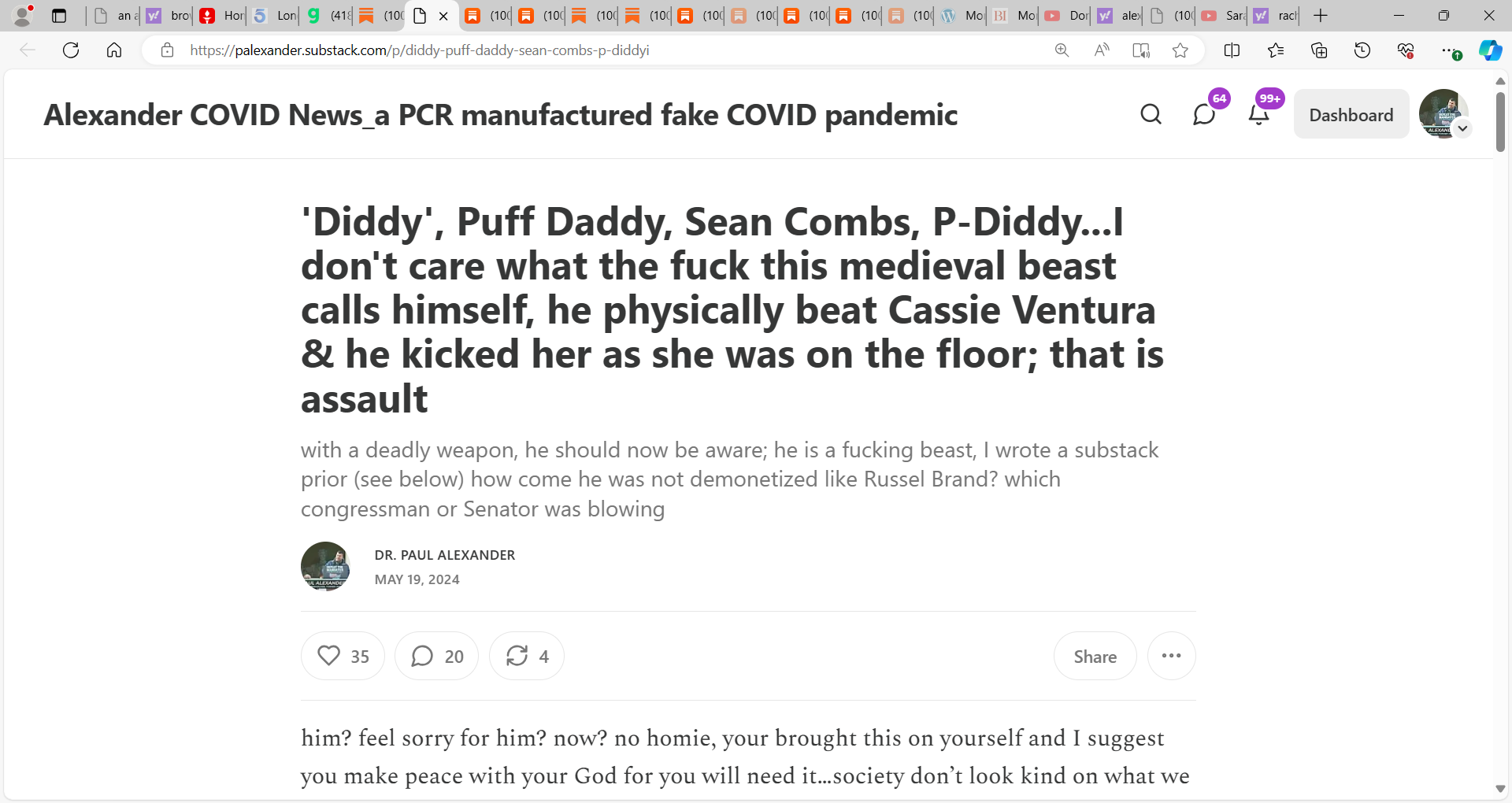 But this is all Diddy, he is a beast, he felt powerful, entitled to beat women and to have control and I wish some women can find his lawyers and tune them up as they work now to help bullshit the public with contrition. To get him off. He should be in a cage. IMO.