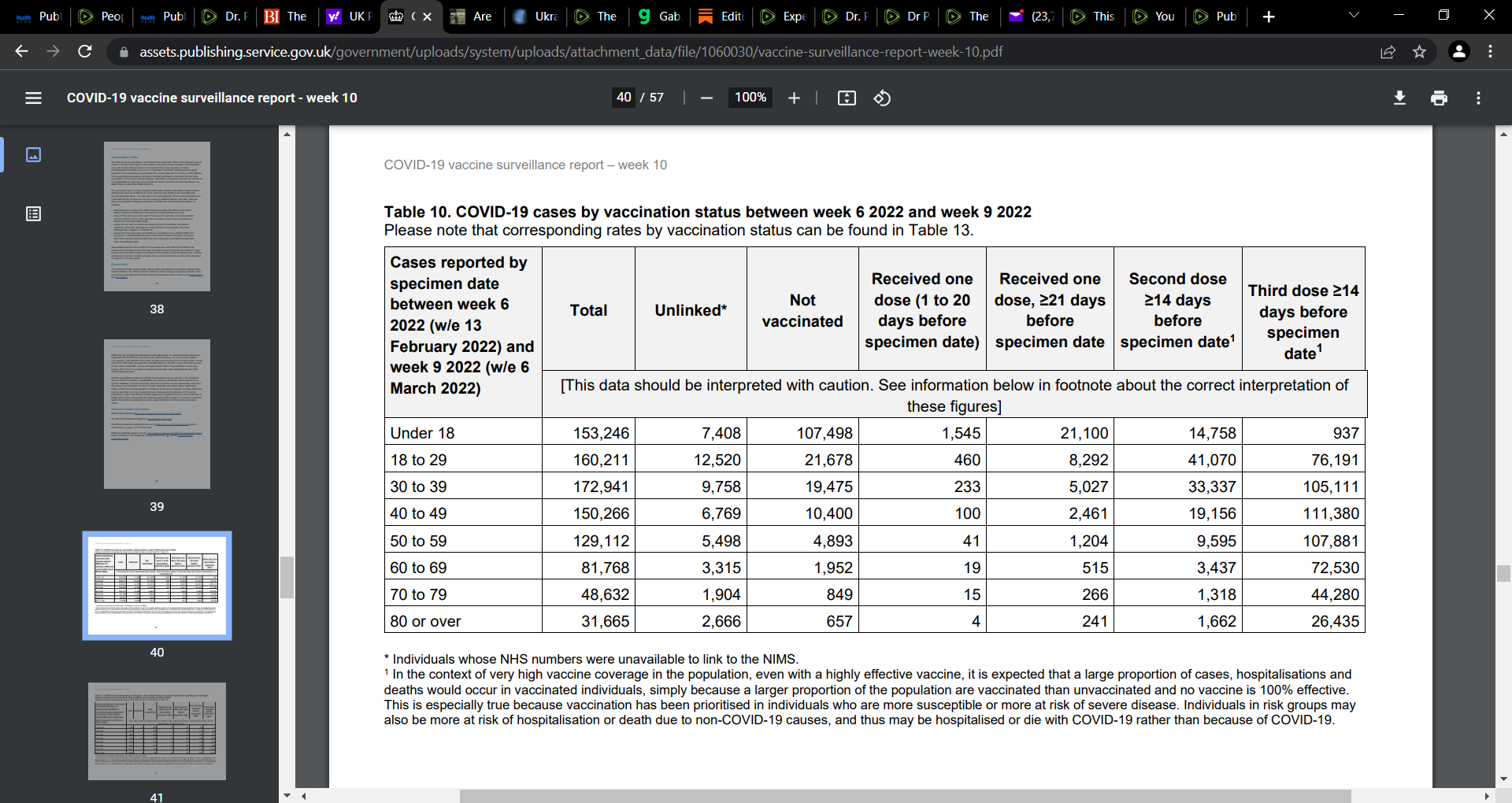Week 10 COVID data UK, up to 6 March, shows continuing negative efficacy, with > 18 years showing higher infection; compared to week 9; key is the potent role of INNATE immune system