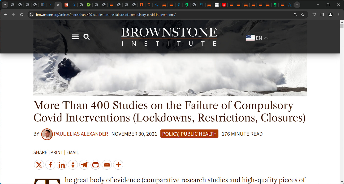 Bendavid reported “in the framework of this analysis, there is no evidence that more restrictive nonpharmaceutical interventions (‘lockdowns’) contributed substantially to bending the curve of new cases in England, France, Germany, Iran, Italy, the Netherlands, Spain, or the United States in early 2020.” We’ve known this for a very long time now but governments continue to double down, causing misery upon people with ramifications that will likely take decades or more to repair.