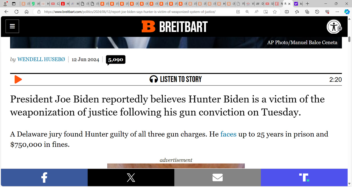 Hunter is the victim? Not POTUS Trump? Where every possible prosecutorial misconduct charge could be levied against Bragg and Merchan and James?