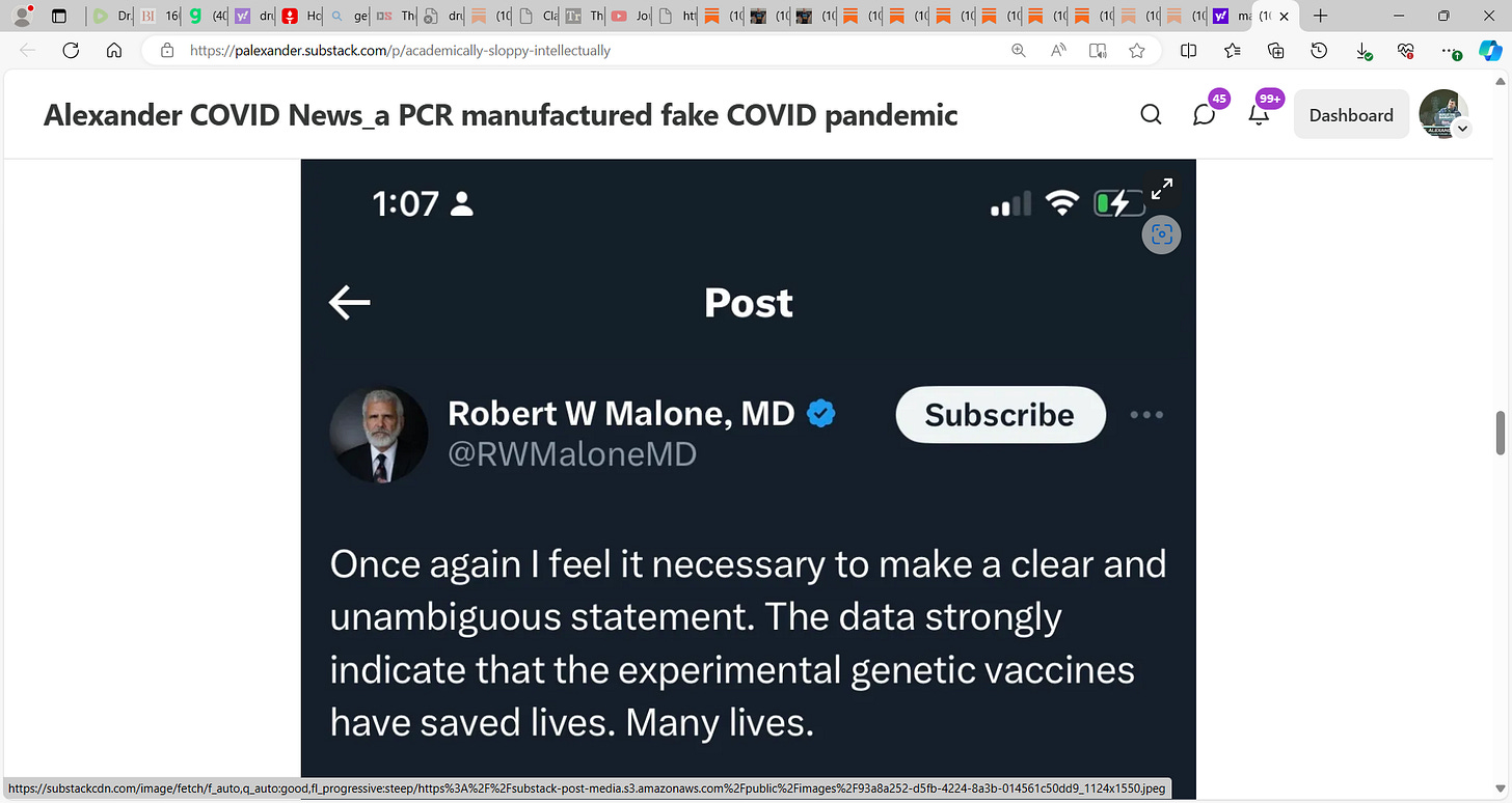 How could Bhattacharya get it so wrong on the COVID vaccine that the Canadian trucker got so right? What data was he looking at to say it was safe? Good for elderly? How did UK’s John Campbell get it so wrong initially on the vaccine? That these people got it so wrong and so many followed them and took the shot? Shilling for the vaccine yet we were all looking at the same evidence and they were so wrong. That Malone who was involved in the mRNA technology with Weissman et al. could openly lie about the benefits and safety even lying about taking the shot, shilling to drive you to take it? How come? And you ‘follow’ these people? How could they remain so very silent on key issues that had they spoken up, had Malone spoken up early on many would be alive today. Was he incentivized to remain silent? Was Kariko? Weissman? When did Bourla know it was harmful, or Bancel?…why was he Malone, and they, silent? They knew their mRNA technology in the mRNA vaccine as well as the vaccine itself and the complete lipid-nano particle (fatty lipid ball) delivery platform was never safety-tested and for any duration that could exclude harms. Yet why did they lead people to slaughter by being silent?