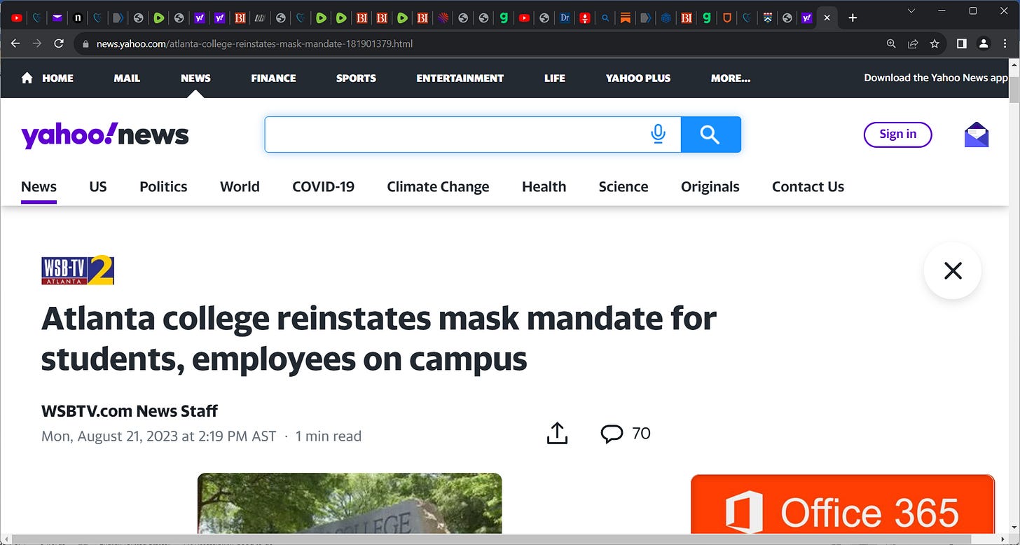 What idiocy, what buffoonery by Atlanta college reinstating mask mandates for students and employees; the question is why? this is 'woke' on roids, this is for brownie points for no science, nothing..