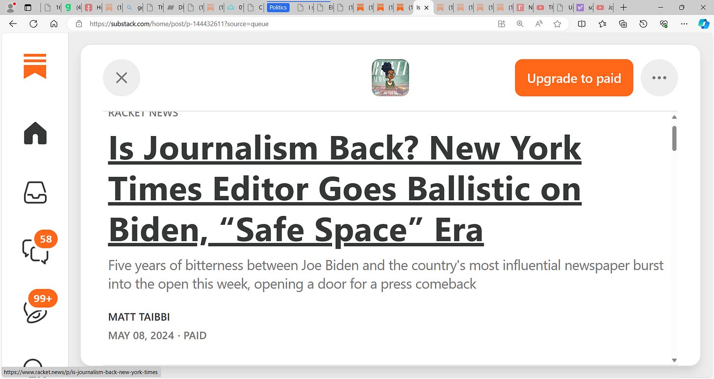 wrong Taibbi, bullocks! Your wrote "Don’t look now, but journalism might be back." in response to prostration by Joe Kahn; look Matt, its been decades & years that NYT have vilified 45