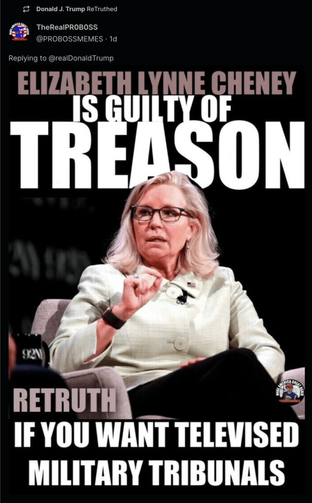 Yes, Cheney committed treason, as did all those on the sham J6 committee who colluded with Pelosi to cover up THEIR act of insurgency against America and a sitting President, that resulted in a stolen election, and overthrow of the government.