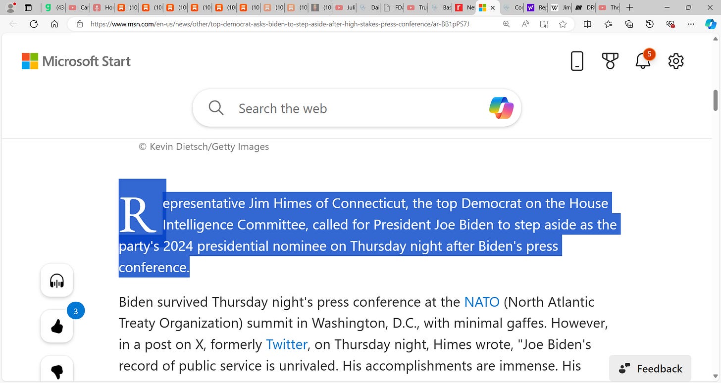 committee, told him GET OUT! Also, on senate side, U.S. Senator Mark Warner chair of the Senate Intelligence Committee, wants Biden OUT! Biden LOST the Intelligence community, getting on Trump train