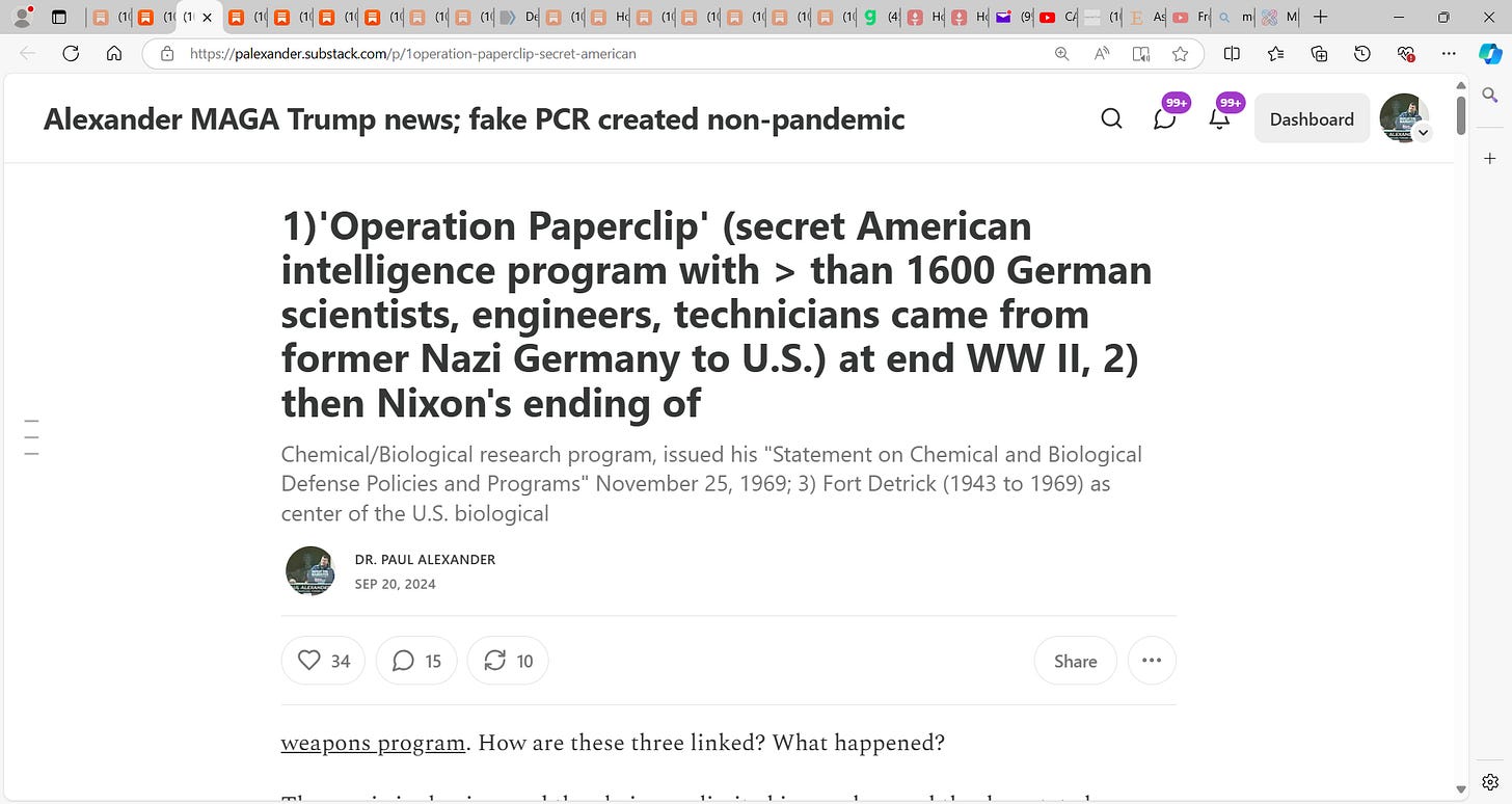 When you understand the interconnection between the CIA's + DoD's biological weapons program Operation Paperclip bringing Nazi scientists to the US 1945, Nixon shutting it down 1969, Fort Detrick,