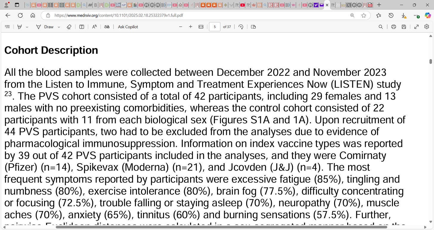 This study is small sample sized and an observational residually confounded study that IMO did not employ ample procedural and statistical controls to help define ‘cause’. This demands that validation with stronger research methods and reproducibility is needed, so as to define whether these results are idiosyncratic or a stable, TROUBLING result of the mRNA vaccination sequelae.