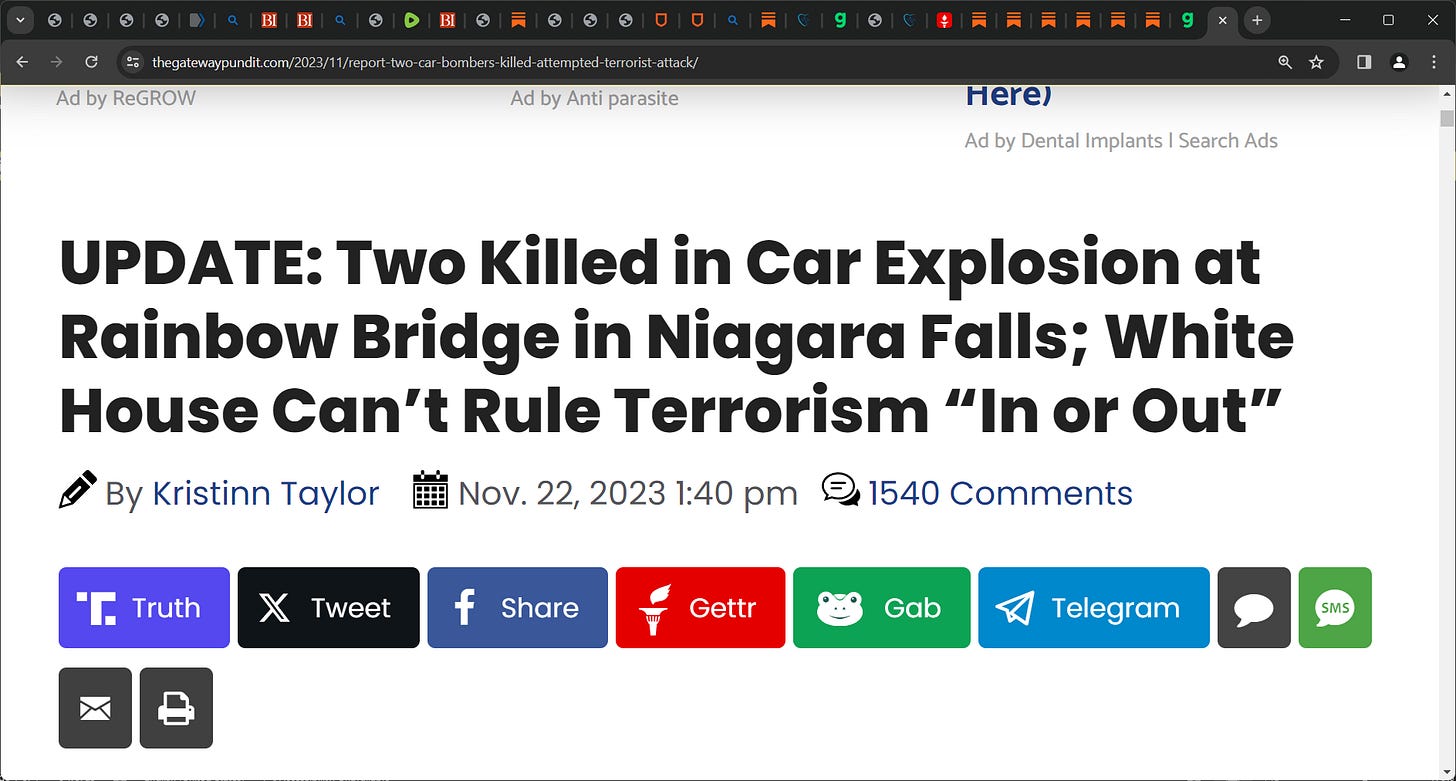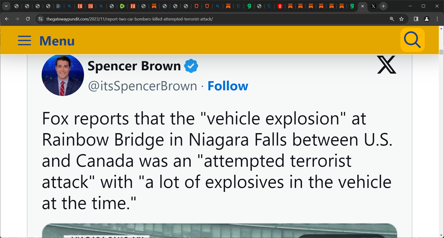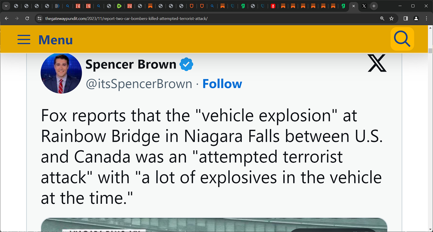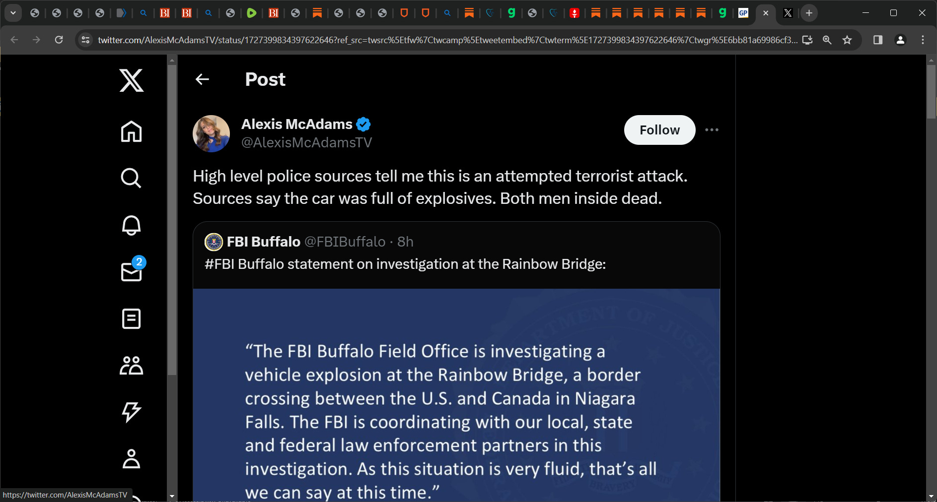 White House still at this time not ruling terrorism 'in' or 'out' as to the car that exploded at Ranbow bridge Canada US border; there is something we are not being told here