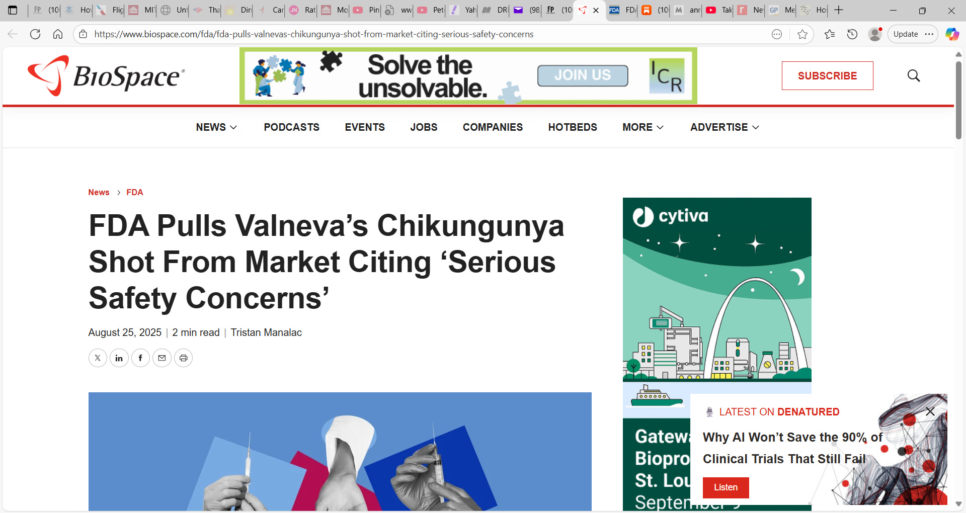 So FDA Pulls Valneva’s Chikungunya vaccine Ixchiq From Market Citing ‘Serious Safety Concerns’,