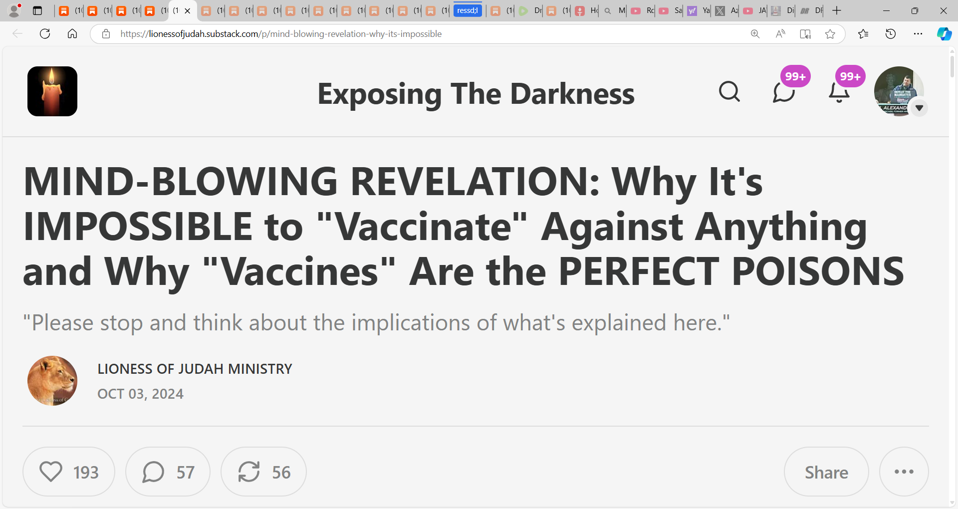 'Why It's IMPOSSIBLE to "Vaccinate" Against Anything and Why "Vaccines" Are the PERFECT POISONS'; Exposing The Darkness Lioness of Judah Ministries, "Please stop and think about the implications of