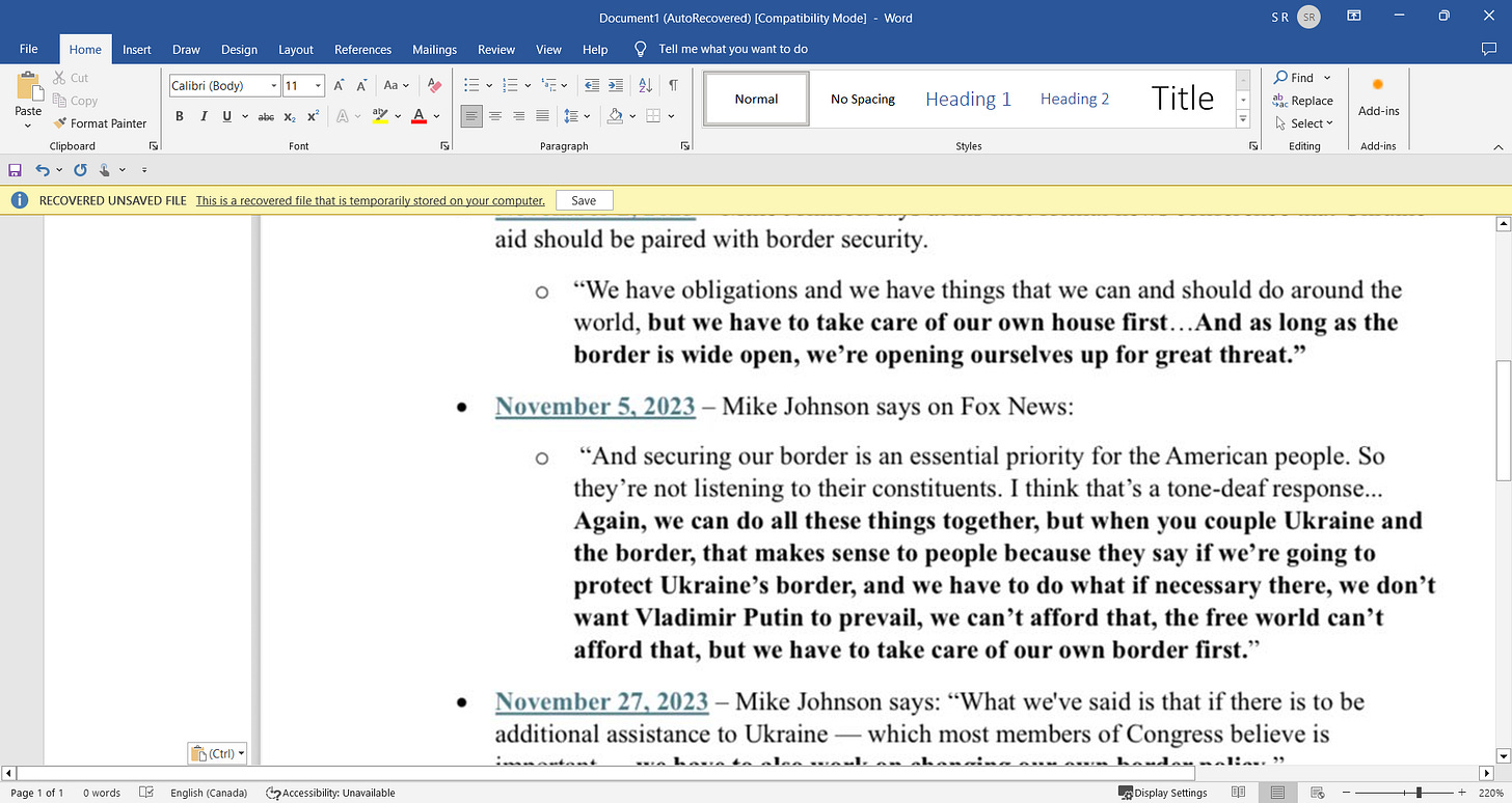 This is Speaker Johnson’s words before what we would term ‘CONGRESSIONAL CAPTURE’…what happened in those briefings to flip Johnson? Does someone have something on him?